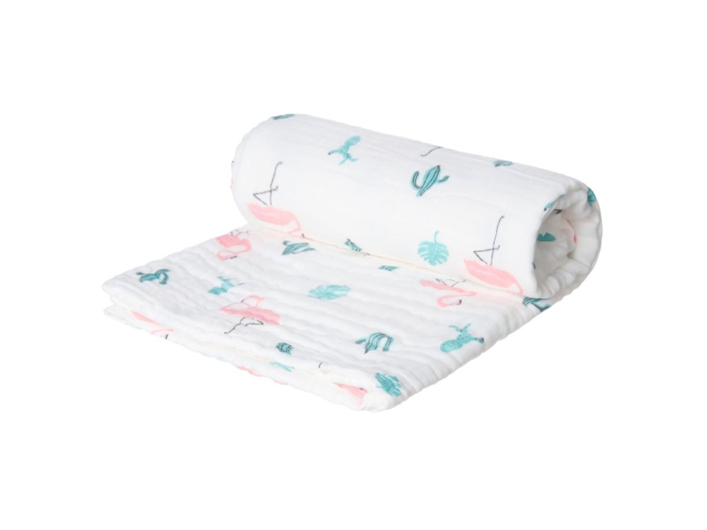Doprajte svojmu bábätku pohodlie a jemnú starostlivosť s mušelínovou dekou "Akuku mušelínová deka Plameniaky"!