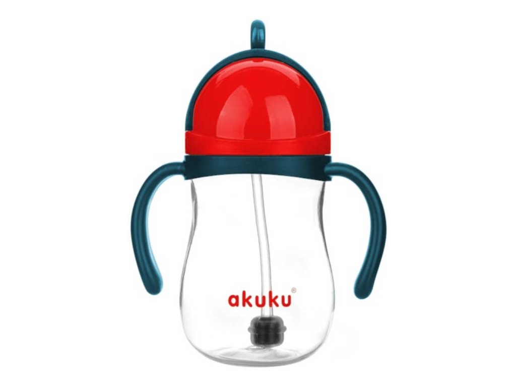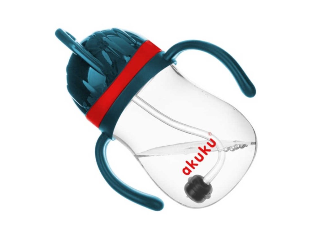 Uľahčite svojmu dieťatku samostatné pitie s hrnčekom "Akuku pohárik so slamkou a s ťažítkom modro/červený"!