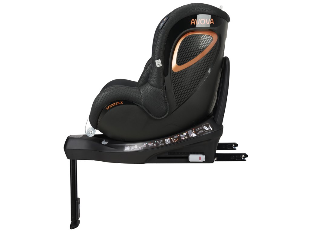 Bezpečnosť je v DNA značky AVOVA. Model Sperber X je vybavený integrovanou ochranou proti bočnému nárazu ISIP, ktorá účinne absorbuje sily vzniknuté pri kolízii. Robustná oporná noha v kombinácii so systémom ISOFIX zaručuje stabilitu a pevné ukotvenie v každom kompatibilnom vozidle. Autosedačka umožňuje jazdu v bezpečnejšej polohe proti smeru jazdy až do výšky 105 cm.