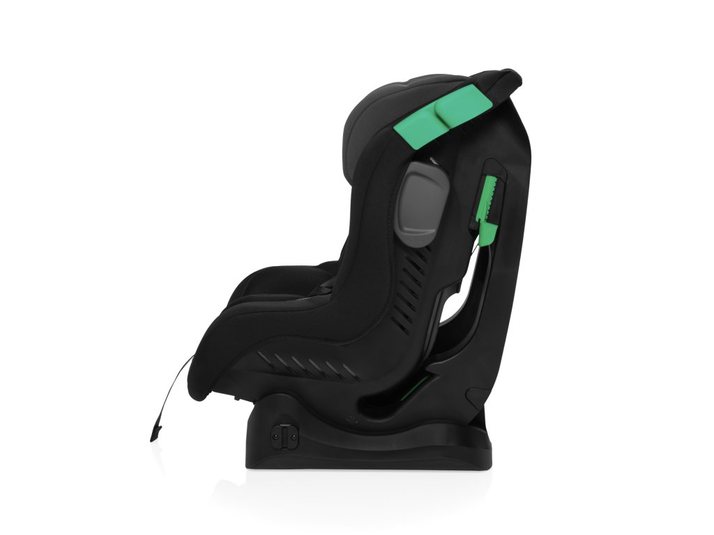 - Extra ležiaca poloha (150°): V protismere ponúka unikátny uhol ľahu, ktorý nielen zvyšuje komfort, ale pri náraze alebo prudkom brzdení efektívne zmierňuje sily pôsobiace na dieťa.
