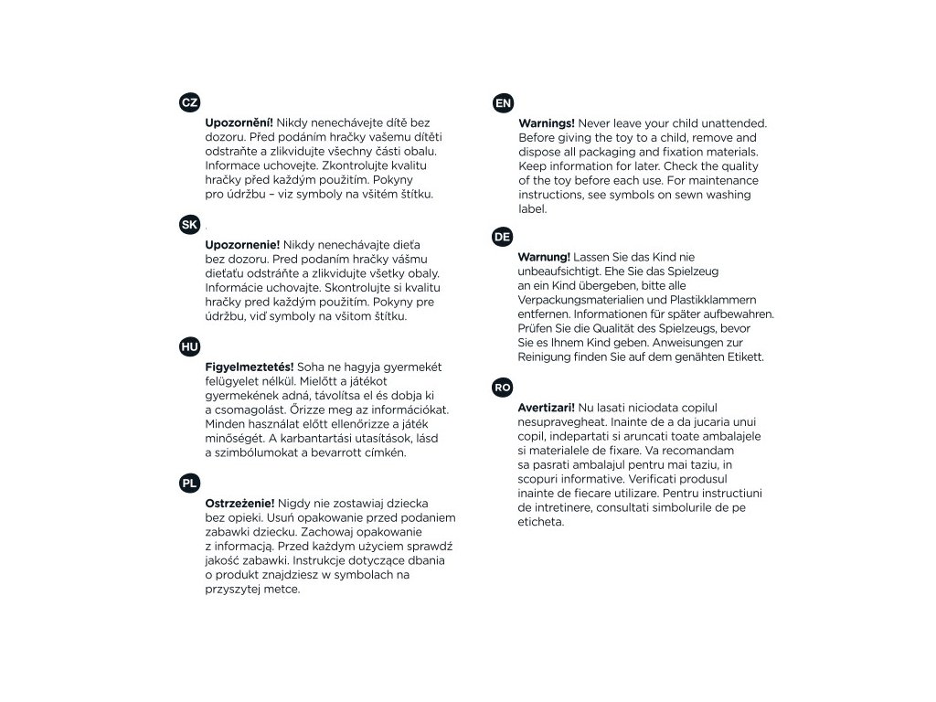 Bábiku odporúčame prať ručne pri teplote do 30°C s použitím jemného pracieho prostriedku určeného pre deti.