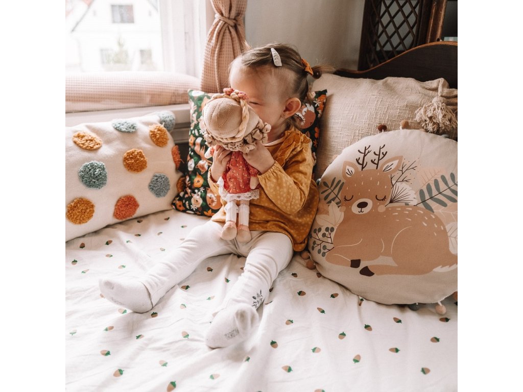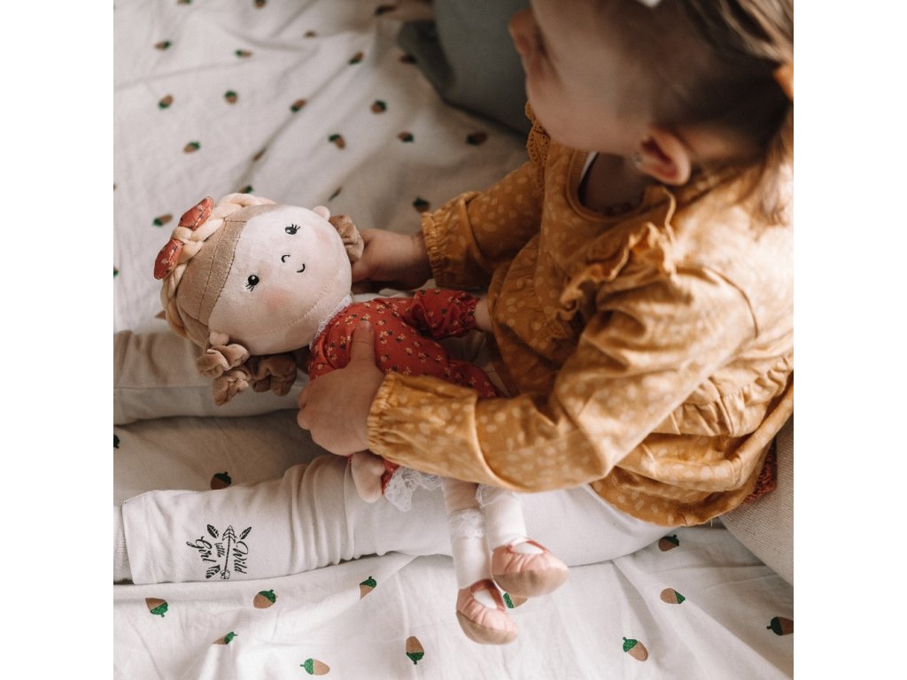 Pre zachovanie tvaru a jemnosti materiálov odporúčame bábiku prať výhradne ručne pri teplote do 30°C.