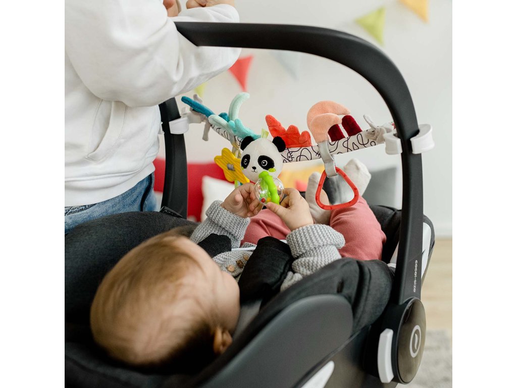 - Dva klipy umožňujú rýchle, jednoduché a flexibilné upevnenie na kočík, autosedačku alebo postieľku.