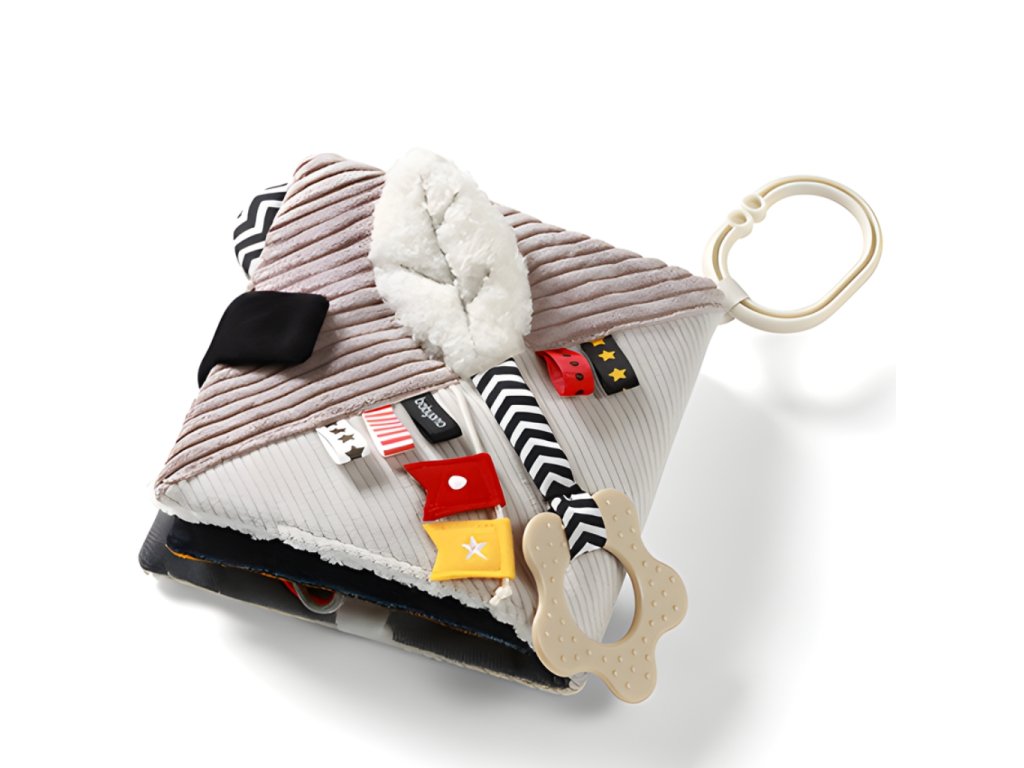 Knižka je ľahká a svojou veľkosťou 15x15 cm je ideálne prispôsobená malým detským rúčkam. Vďaka praktickému univerzálnemu pútku ju môžete jednoducho zavesiť na kočík, autosedačku alebo postieľku, takže bude sprevádzať vaše dieťatko doma aj na cestách.