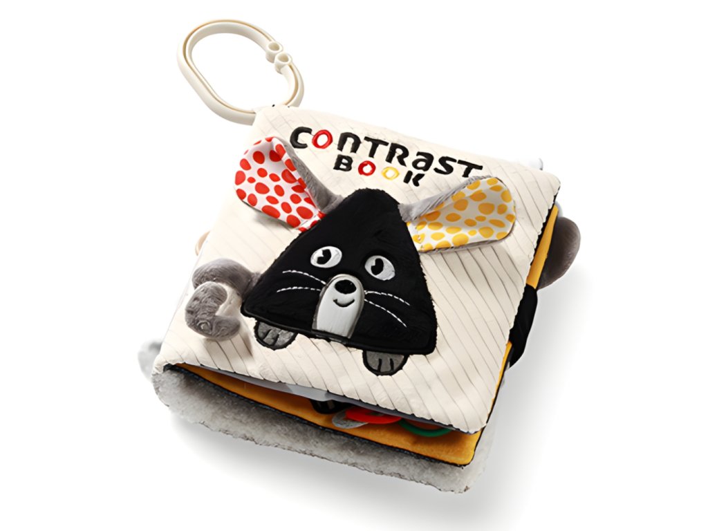 - Stimulácia zraku: Čiernobiele kontrasty doplnené o červené a žlté prvky sú prvými farbami, ktoré bábätká vnímajú, čím podporujú vývoj zrakového centra.