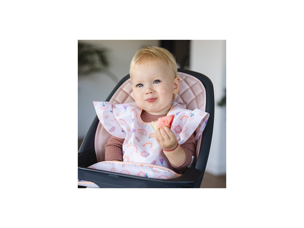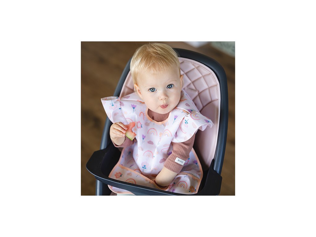 BabyOno podbradník dúha kombinuje zábavný vzhľad s funkčnosťou, čím poskytuje praktickú a štýlovú ochranu pre malé deti pri ich každodenných aktivitách.