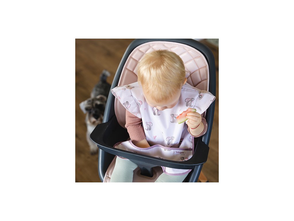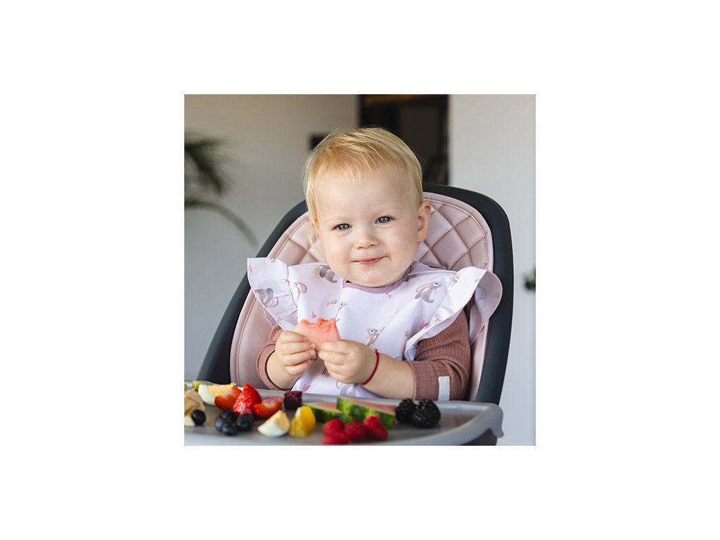 - Praktické riešenie: Predné vrecko na podbradníku zachytáva zvyšky jedla a omrvinky, čo zjednodušuje čistenie a pomáha udržať okolie čisté.