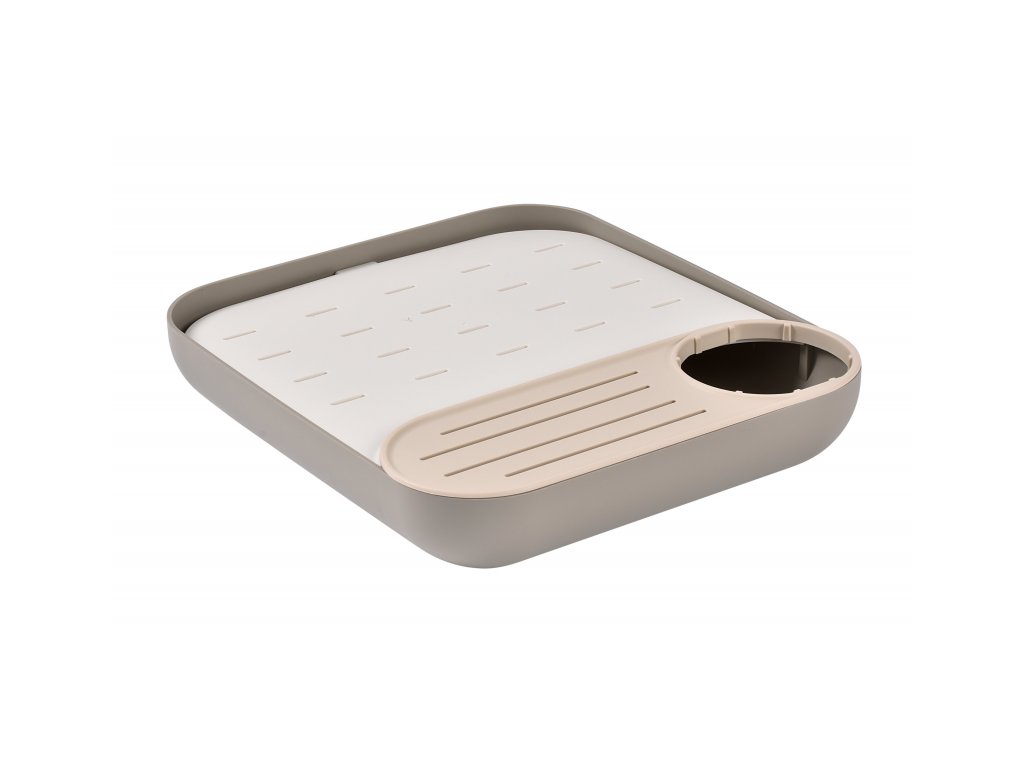 2. Je základňa dostatočne veľká na zachytenie vody? Áno, základňa je navrhnutá tak, aby bezpečne zachytila vodu stekajúcu z riadu bez rizika pretečenia na kuchynskú linku.
