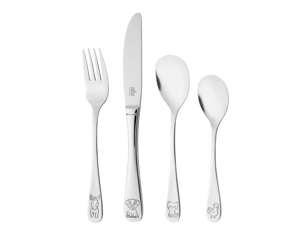 Sada obsahuje štyri kúsky príborov s ideálnymi rozmermi pre detské ruky: