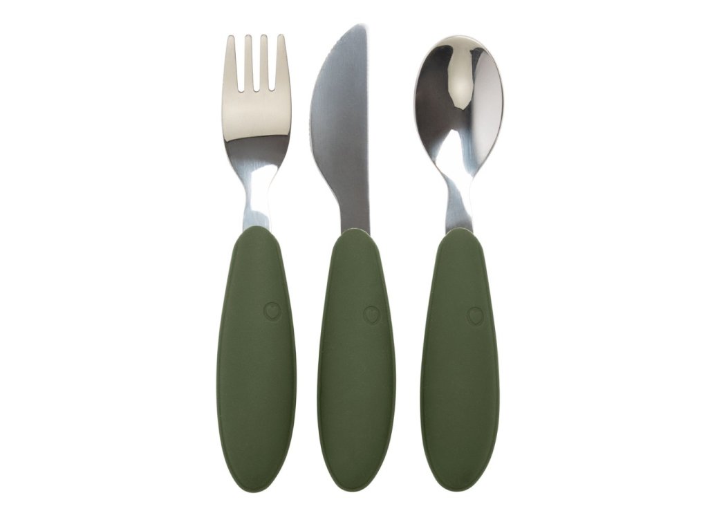 BIBS detský nerezový príbor sa skladá z troch častí - vidlička, nôž, lyžička a je ideálny pre detičky, ktoré si chcú precvičovať samostatné jedenie. Kovová časť je vyrobená z kvalitnej nehrdzavejúcej ocele. Rukoväte sú zo 100 % bezpečného potravinárskeho silikónu.