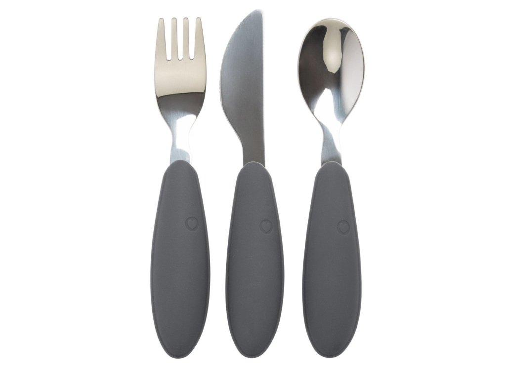 BIBS detský nerezový príbor sa skladá z troch častí - vidlička, nôž, lyžička a je ideálny pre detičky, ktoré si chcú precvičovať samostatné jedenie. Kovová časť je vyrobená z kvalitnej nehrdzavejúcej ocele. Rukoväte sú zo 100 % bezpečného potravinárskeho silikónu.