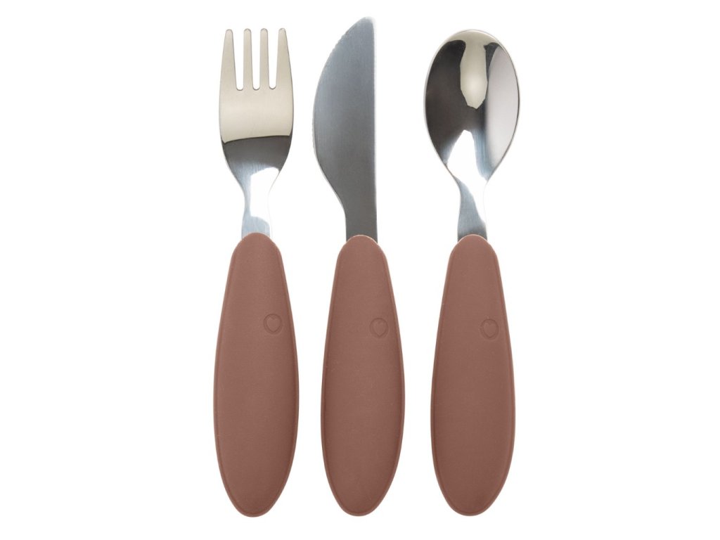 BIBS detský nerezový príbor sa skladá z troch častí - vidlička, nôž, lyžička a je ideálny pre detičky, ktoré si chcú precvičovať samostatné jedenie. Kovová časť je vyrobená z kvalitnej nehrdzavejúcej ocele. Rukoväte sú zo 100 % bezpečného potravinárskeho silikónu.