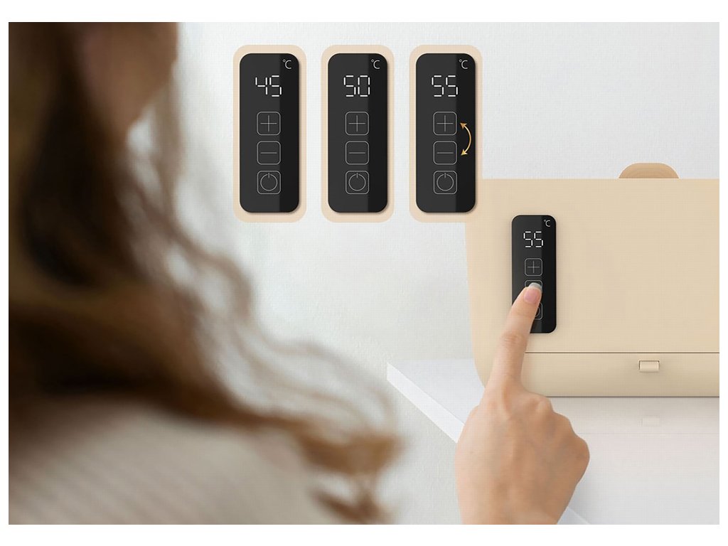 - Tri úrovne ohrevu: Nastaviteľná teplota 45°C, 50°C alebo 55°C podľa vašich preferencií.