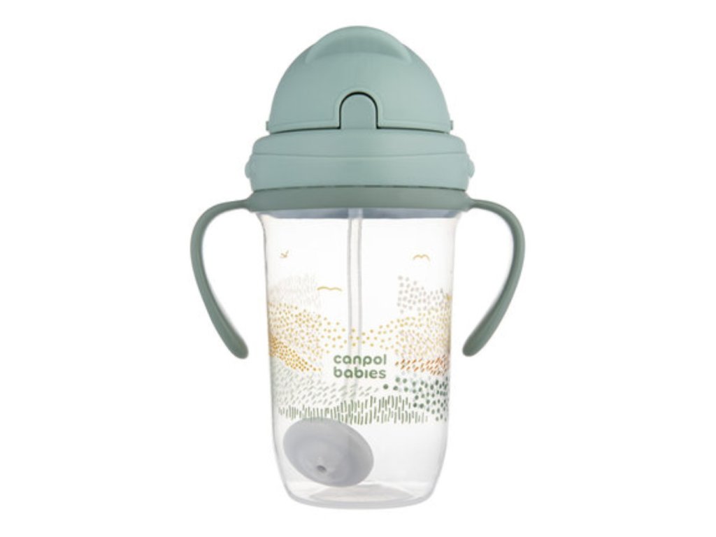 Naučte svoje dieťatko samostatne piť s praktickým hrnčekom "Canpol hrnček s uškami a s ťažítkom Mountains 270 ml zelený"!
