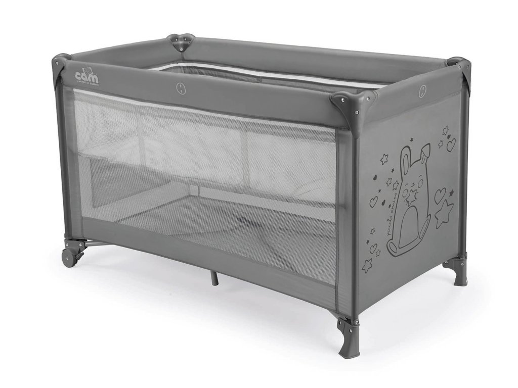 Značka CAM dbá na stabilitu a ochranu. Odolná kovová konštrukcia zaručuje pevnosť aj pri aktívnejšom pohybe dieťaťa. Bočné steny sú vyrobené z priedušnej sieťoviny, ktorá zabezpečuje optimálnu cirkuláciu vzduchu a umožňuje vám mať dieťatko neustále pod dohľadom. Veselé potlače na sieťovine navyše stimulujú vizuálne vnímanie dieťaťa.