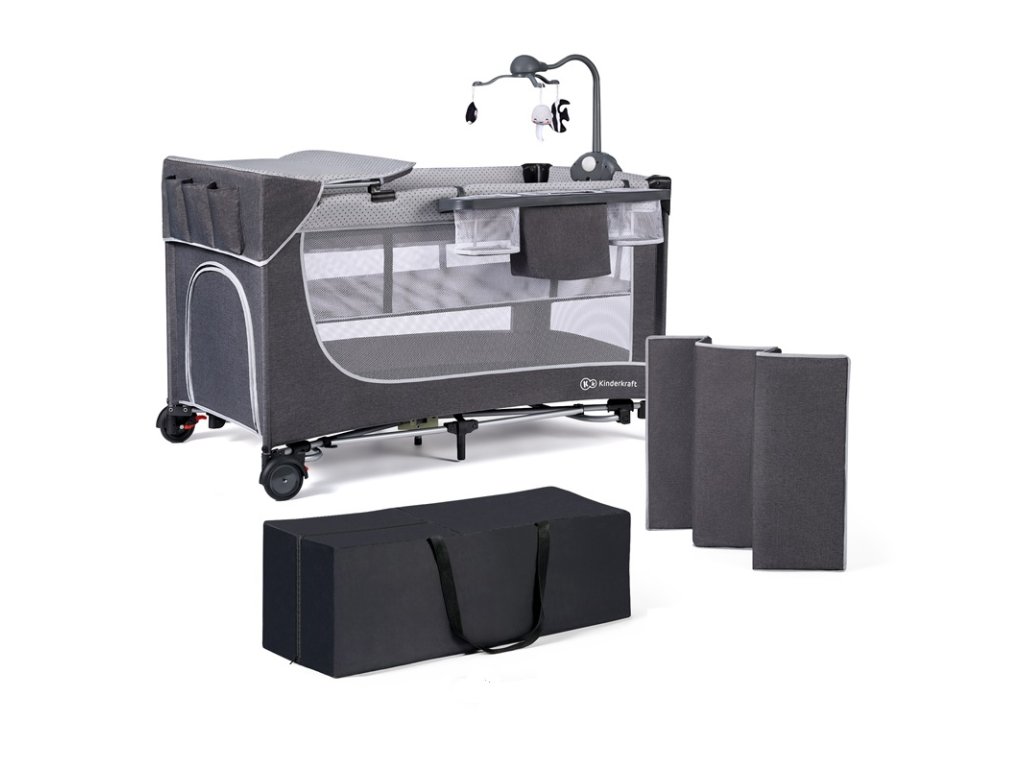 Cestovná postieľka Kinderkraft Leody s doplnkami Grey