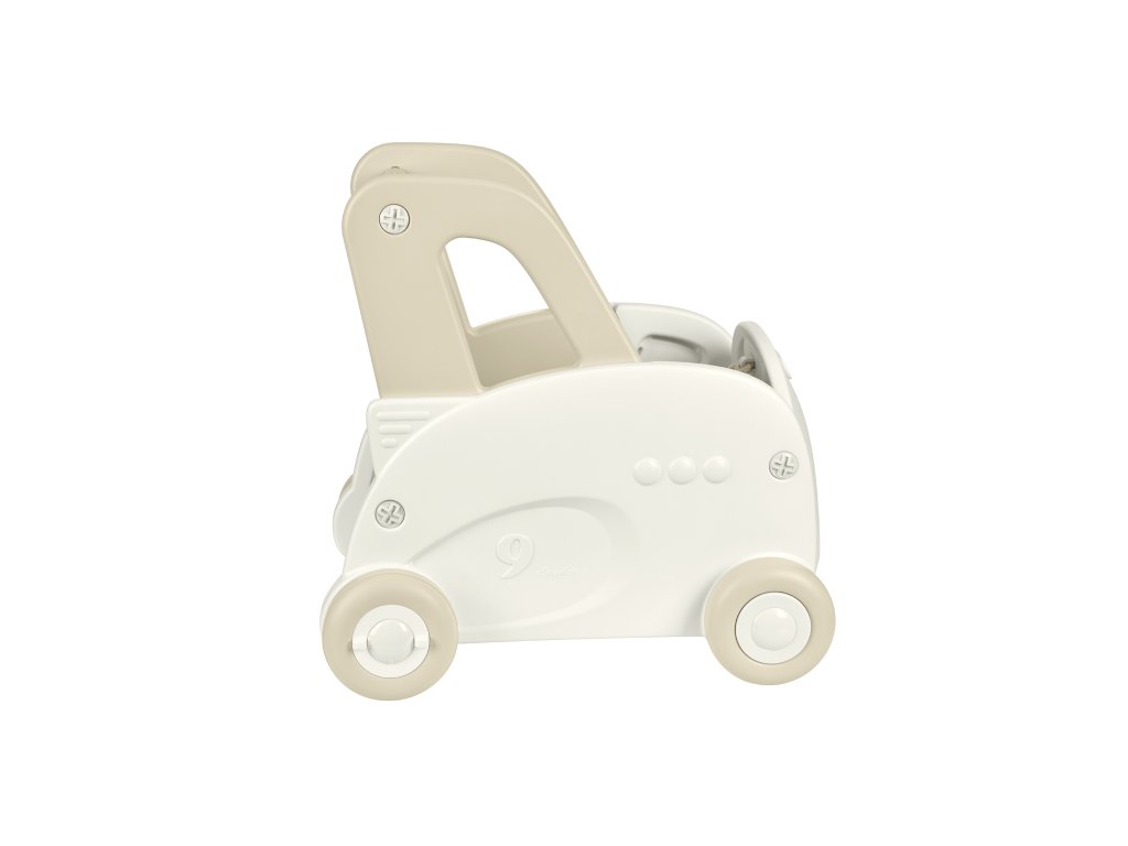 Konštrukcia chodítka je ľahká, no zároveň dostatočne robustná. Ergonomicky tvarovaná rukoväť je príjemná na dotyk a ľahko sa drží aj drobnými detskými rúčkami. Priestor vozíka je dostatočne veľký na to, aby si v ňom dieťa mohlo voziť plyšové hračky, stavebnice alebo iné poklady, čo podporuje hru a predstavivosť.