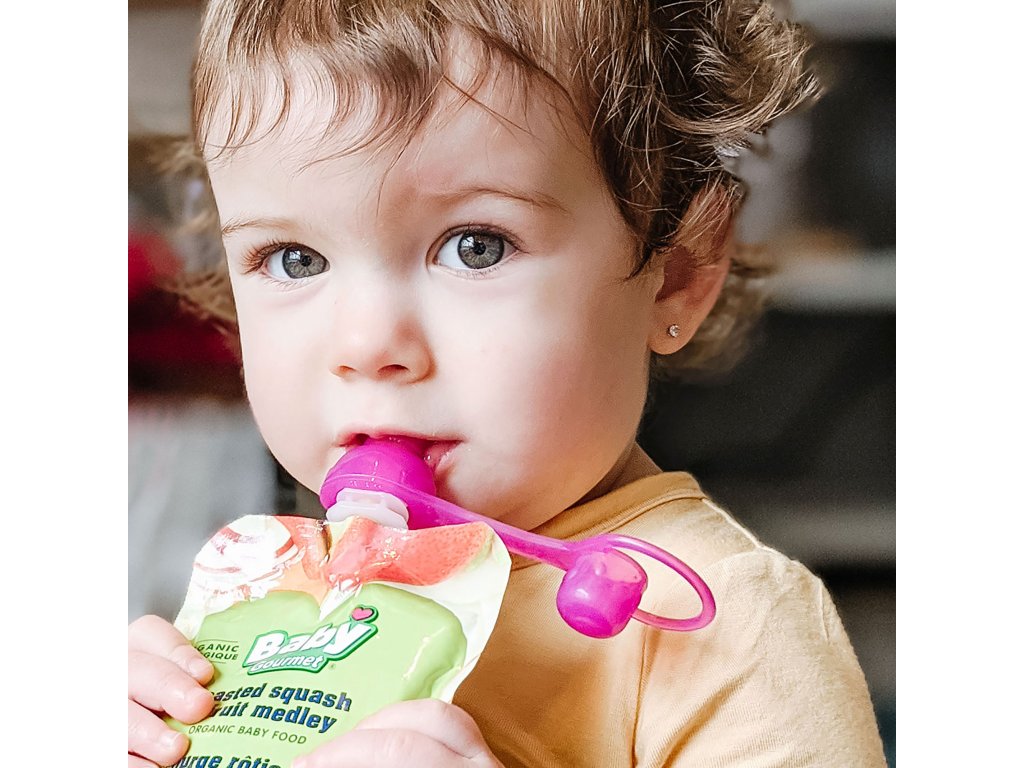 - Kompatibilita a bezpečnosť: Náustky sú vhodné pre jednorazové aj opakovane použiteľné kapsičky na príkrmy a neobsahujú BPA, PVC, olovo a ftaláty. Vhodné pre deti od 6 mesiacov.