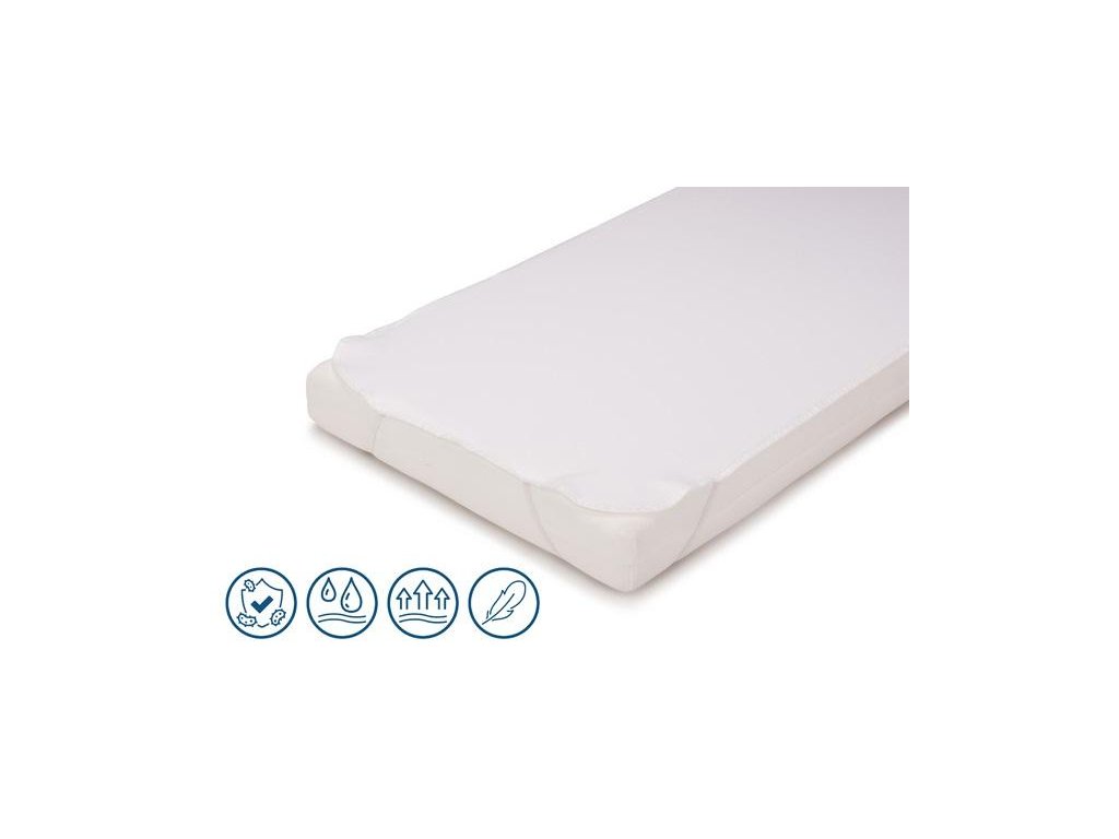 Vďaka použitiu jemného bavlneného jersey materiálu chránič nešuští a nespôsobuje nepohodlie pri pohybe dieťatka. Skvele saje vlhkosť, zostáva priedušný a je príjemný na dotyk, takže ho môžete používať samostatne alebo ako ochrannú vrstvu pod bežnú plachtu.