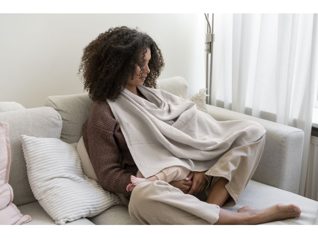 Mäkká tetra bavlna v jemnom odtieni Almond je mimoriadne priedušná, takže bábätku pod dekou nebude príliš horúco. Flexibilita materiálu a veľkorysý rozmer 85 x 100 cm poskytujú dostatok priestoru na pohodlné uloženie dieťaťa do správnej polohy pri dojčení, zatiaľ čo vy zostávate krytá pred zvedavými pohľadmi okolia.