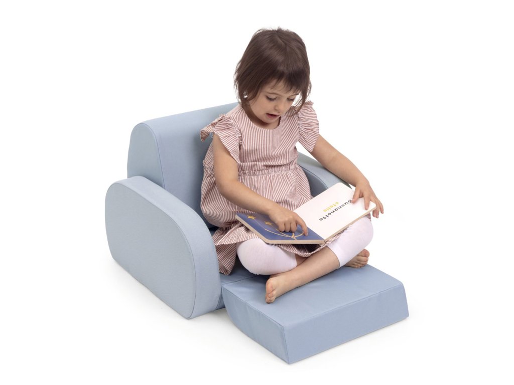 - Unikátny dizajn 3 v 1: Slúži ako klasické kresielko, pohodlné lehátko alebo rozložená detská pohovka.