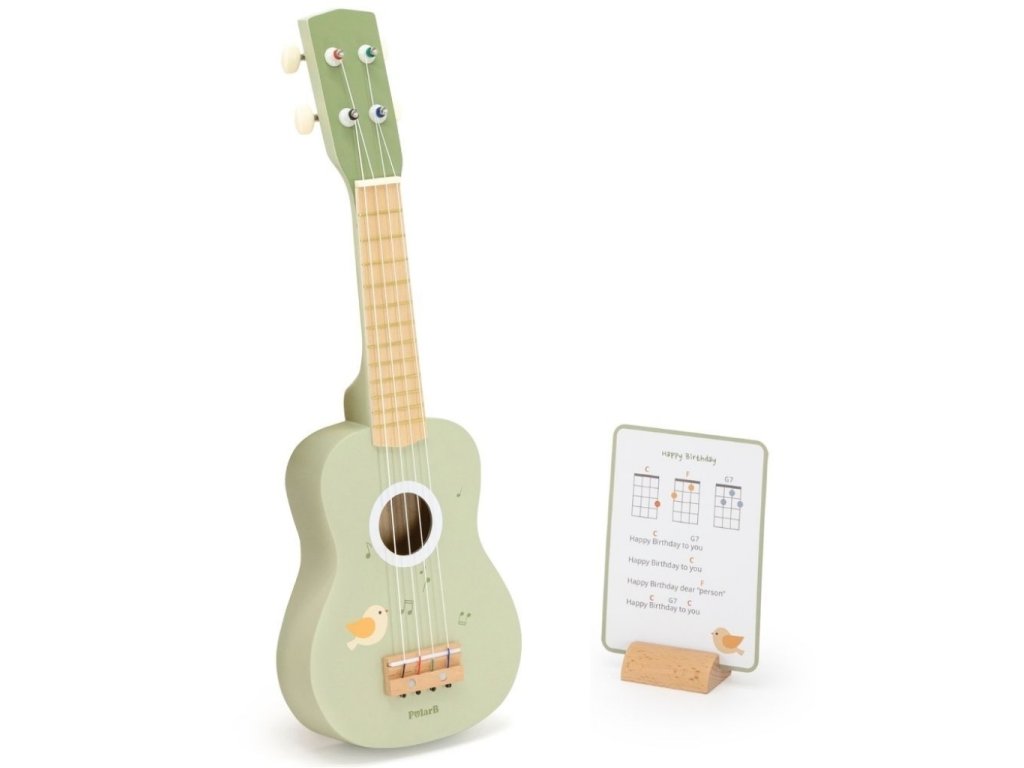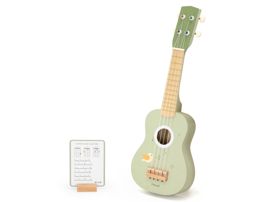 Prebuďte v dieťati lásku k hudbe s nástrojom, ktorý padne presne do malých detských rúčok. Detské ukulele PolarB nie je len obyčajnou hračkou, ale bránou do sveta melódií a rytmu. Vďaka svojmu nádhernému dizajnu v mätovo-zelených tónoch s motívom zvieratiek sa stane obľúbeným spoločníkom každého malého umelca, či už pri domácom koncerte alebo prvých pokusoch o brnkanie.