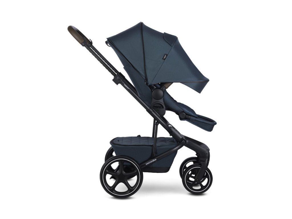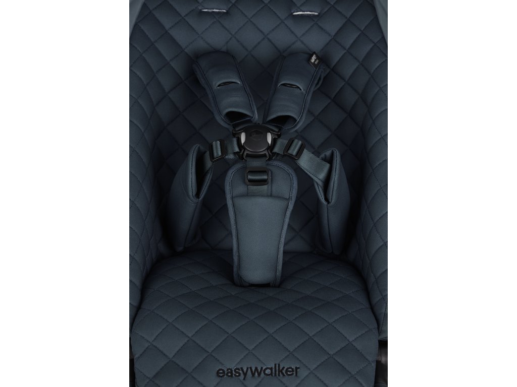 Elegantné a ľahko nastaviteľné sedadlo možno sklopiť do troch rôznych polôh len jednou rukou. Priestranné operadlo je vybavené extra vreckom na zadnej strane a je mimoriadne pohodlné vďaka tvarovaným ramenným vypchávkam, zmäkčovačom na bedrovom páse a ľahko použiteľným magnetickým päťbodovým pásom.