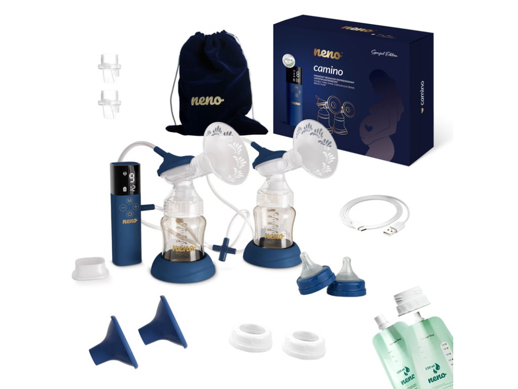 Vďaka nízkej hmotnosti (iba 276 g) a kompaktným rozmerom sa Neno Camino ľahko zmestí do každej kabelky. Nabíjanie cez USB typu C je rýchle a univerzálne, takže ju môžete nabiť aj pomocou powerbanky. Mäkký silikónový prsný štít nedráždi pokožku a simuluje prirodzený rytmus sania dieťaťa.