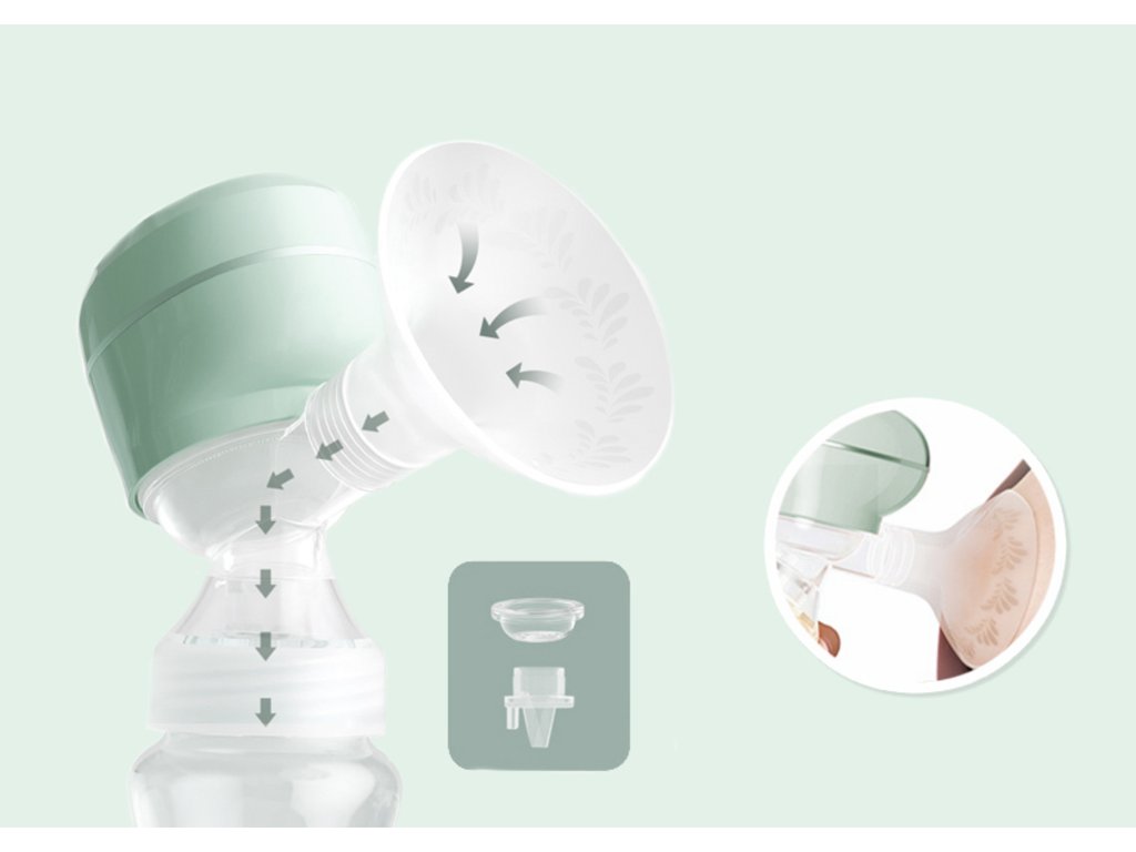 - Dvojfázový systém: Stimulačná fáza (6 úrovní) pripravuje prsník na odber a fáza hlbokého odsávania (9 úrovní) imituje pitie bábätka.
