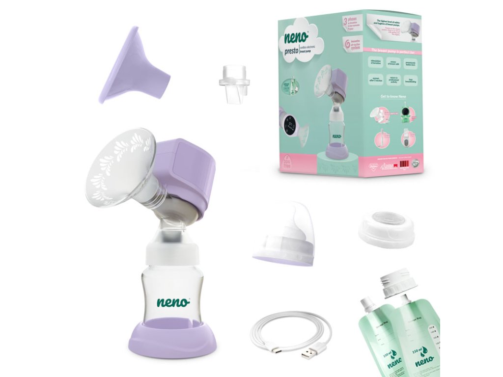 Neno Presto vyniká svojou ultra-tichou prevádzkou, čo oceníte najmä pri nočnom odsávaní, kedy nechcete zobudiť bábätko ani partnera. Moderný dotykový displej a štýlový pastelový dizajn robia z tejto odsávačky nielen praktického pomocníka, ale aj elegantný doplnok pre modernú ženu. Nabíjanie cez USB-C port zabezpečí rýchle a pohodlné doplnenie energie aj z powerbanky.