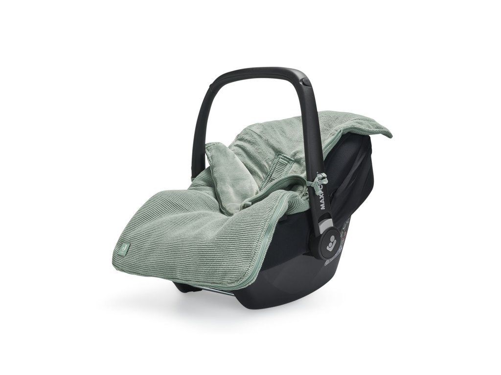 Doprajte svojmu bábätku pocit bezpečia a hrejivého objatia aj počas chladnejších dní. Pletený fusak Jollein Basic Knit v nadčasovej zelenej farbe Ash Green kombinuje jemnosť bavlny s praktickosťou fleecu, čím vytvára dokonalé prostredie pre pokojný spánok v autosedačke či kočíku.