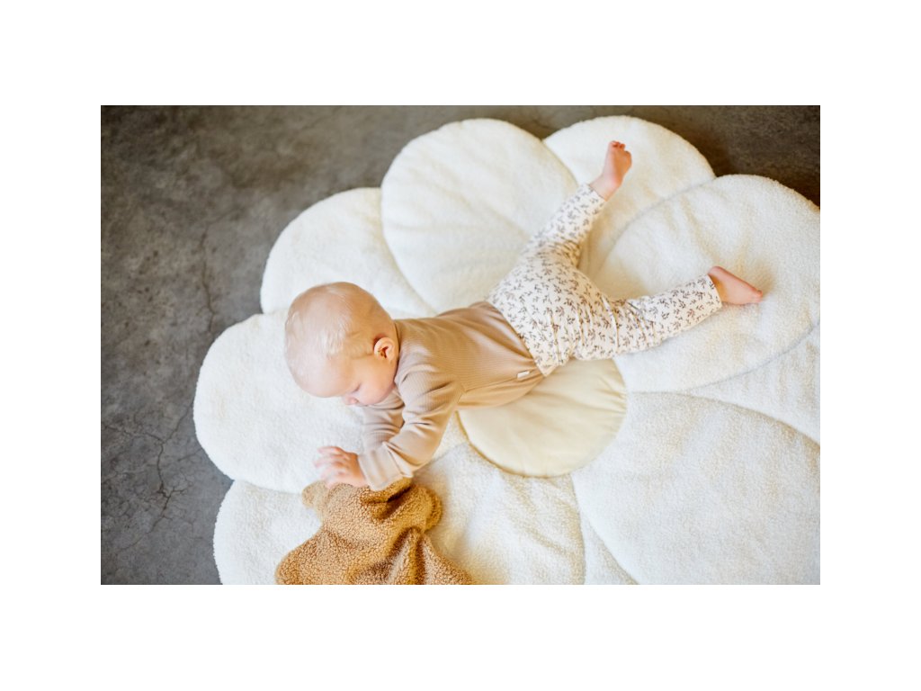 Mäkká hracia deka v podobe obrovskej kvetiny spríjemní hranie dieťaťa na zemi a zároveň slúži ako krásna dekorácia detskej izby.Rozmery: 110 x 110 x 2 cm