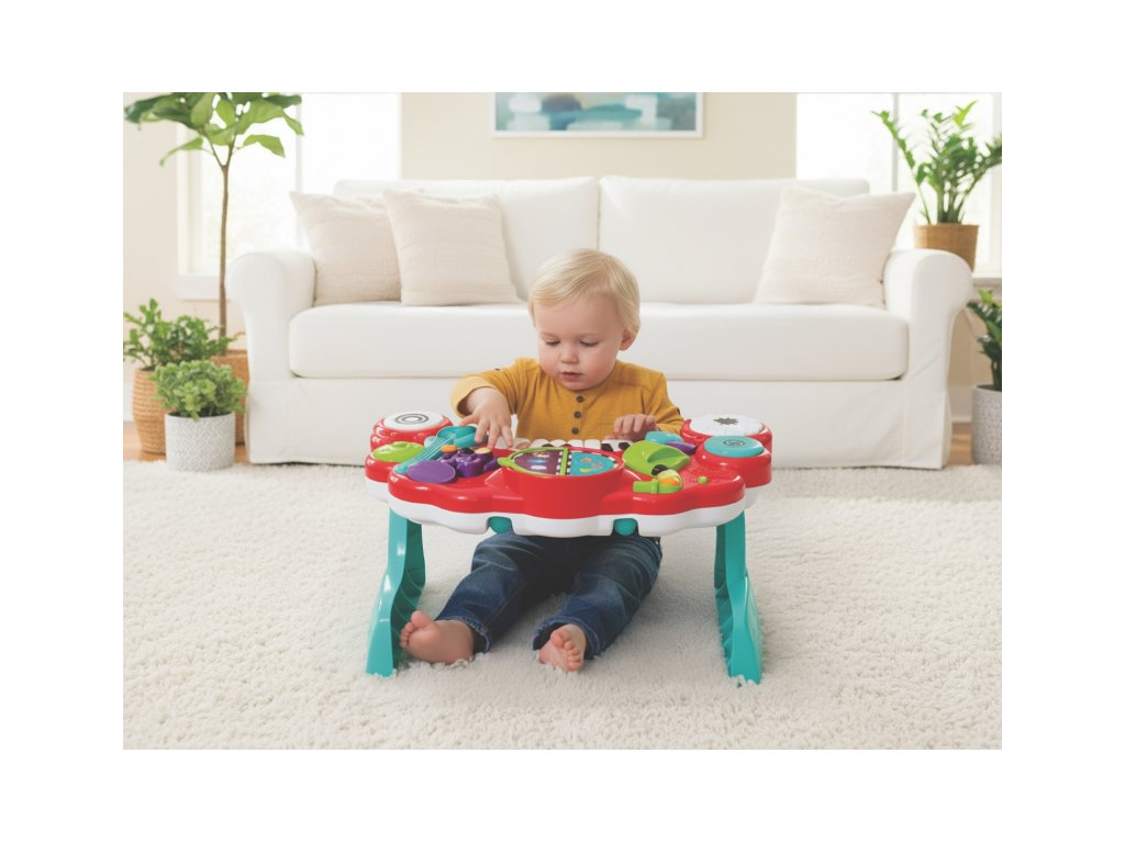 Pult sa zameriava primárne na zvukovú stimuláciu a interakciu cez mechanické prvky a spevník, čo pomáha deťom sústrediť sa na hudobné vnemy.