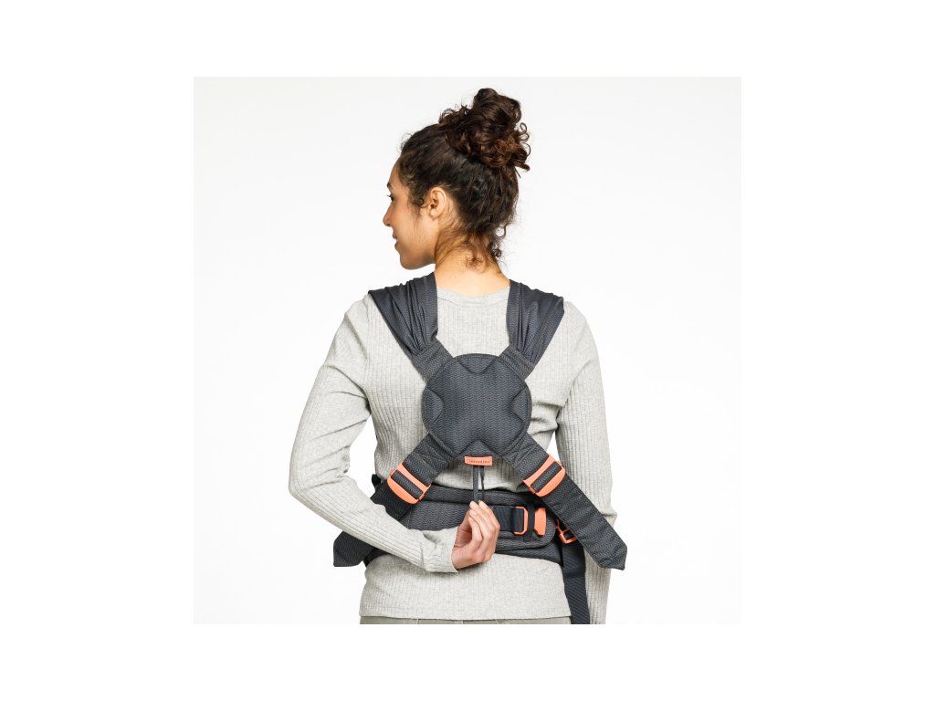 Polstrovaný chrbtový popruh umožňuje jedným pohybom upraviť popruhy nosiča pre ideálne rozloženie hmotnosti noseného dieťaťa. Podporný panel zo strečovej tkaniny prirodzene objíme telo dieťaťa. Polstrovaná opora hlavičky umožňuje pohodlné opretie dieťaťa. Podporný bedrový pás pomáha rozložiť hmotnosť na boky rodiča. Priedušná tkanina zaručuje tepelný komfort dieťaťa.