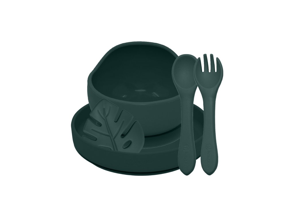 Jedálenská silikónová sada Petite&Mars Take&Match 4 kusy Misty Green
