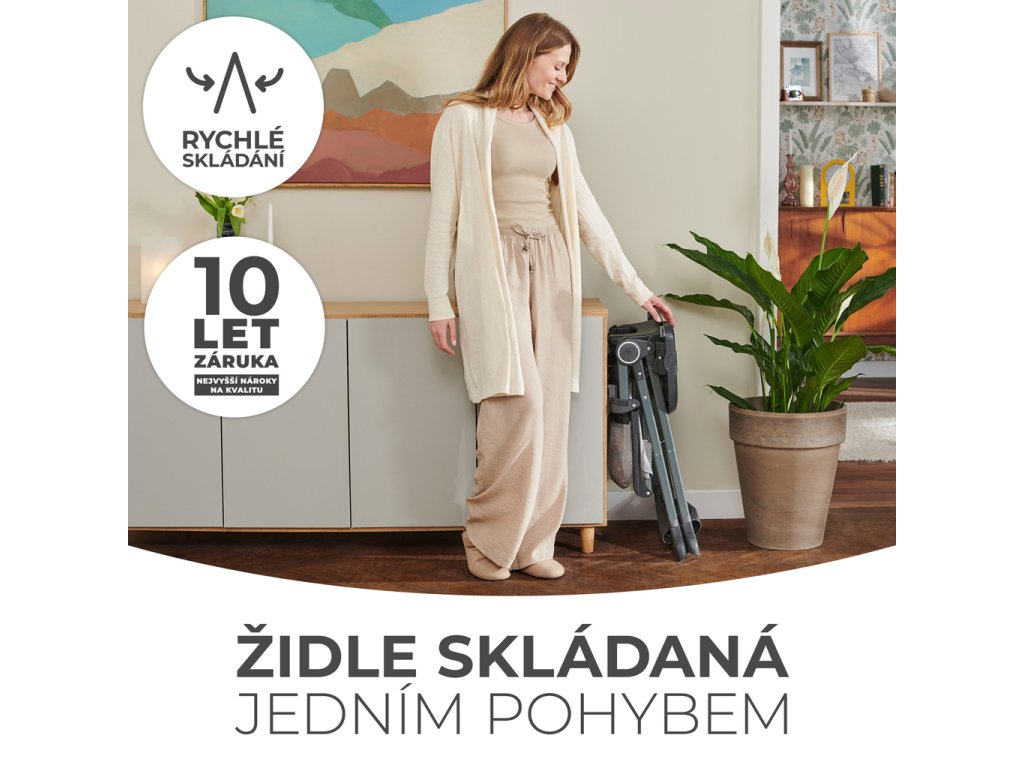 - Ľahké prenášanie: S hmotnosťou iba 5,9 kg a ergonomickou rukoväťou je stolička ideálna na prenášanie medzi miestnosťami alebo na rodinné dovolenky.