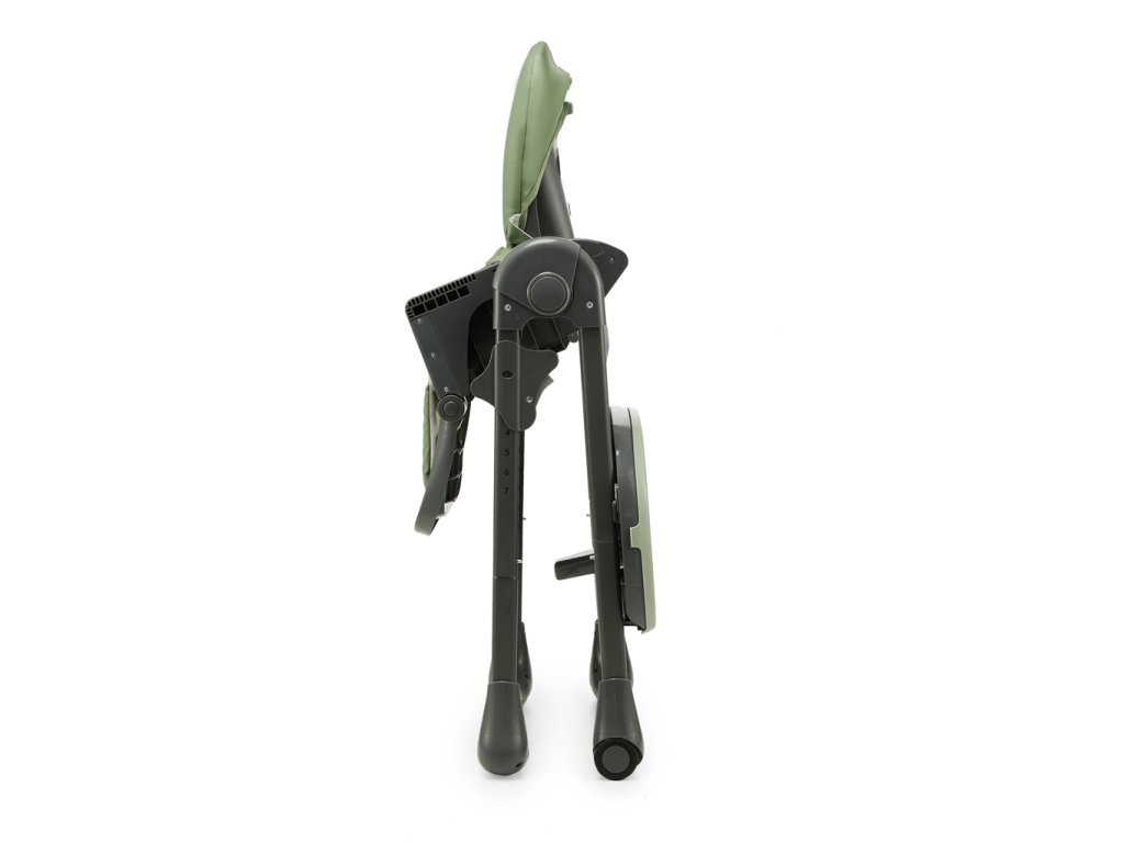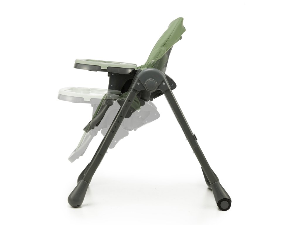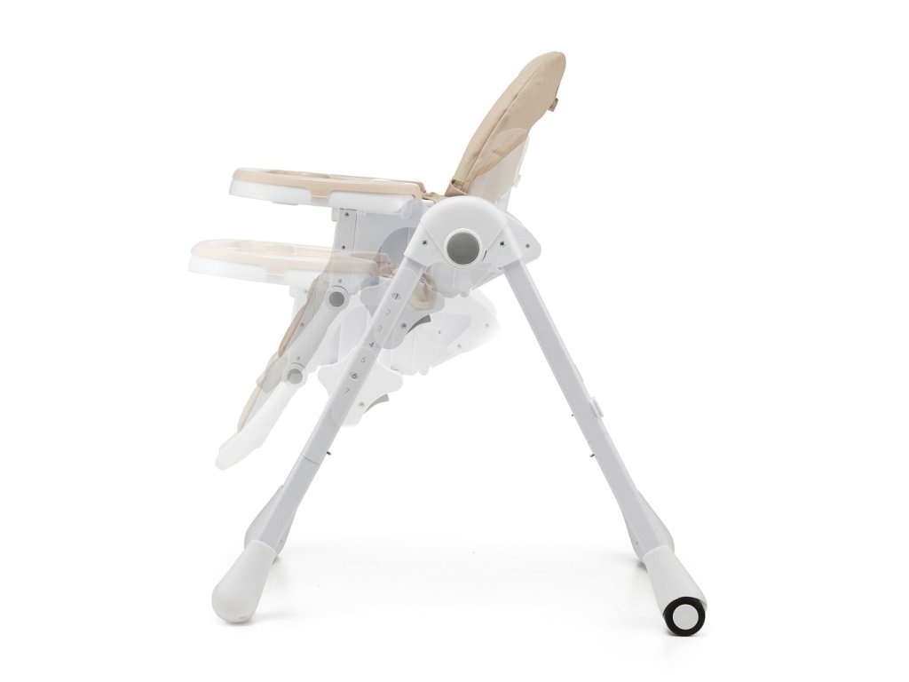 Máte malý byt? Žiadny problém. Tummie sa dá zložiť takmer na plocho a podnos prakticky zavesiť na háčik na zadných nohách. Vďaka dvom integrovaným kolieskam stoličku presuniete medzi kuchyňou a obývačkou bez námahy a škrabancov na podlahe.