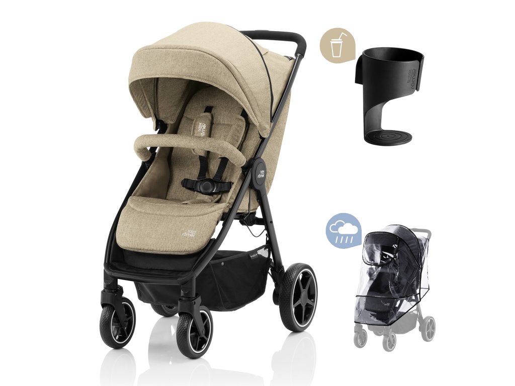 V cene kočíka je zahrnuté bezpečnostné madlo, pláštenka na ochranu pred dažďom a praktický držiak na nápoje.