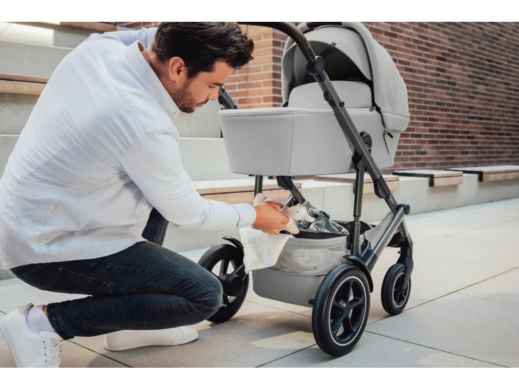 Pre najmenších je pripravená hlboká korba s dvoma veľkými ventilačnými okienkami, ktoré zabezpečujú optimálnu cirkuláciu vzduchu a umožňujú bábätku pozorovať svet aj v polohe na brušku. Autosedačka s funkciou Ergo Recline umožňuje nastaviť ergonomickejšiu a rovnejšiu polohu, čo je kľúčové pre zdravý vývoj chrbtice a udržanie otvorených dýchacích ciest počas spánku.