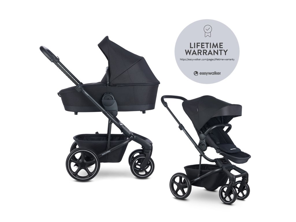 Pohodlie je kľúčom k spokojnému bábätku. Sedadlo kočíka Easywalker Harvey⁵ je nastaviteľné do troch polôh len jednou rukou, čo umožňuje dieťaťu sedieť, odpočívať alebo pokojne spať. Výškovo nastaviteľná rukoväť zasa zabezpečuje komfortné tlačenie pre rodičov rôznej výšky. Pre vaše nákupy a potreby je pripravený nadštandardne veľký nákupný košík s nosnosťou až 10 kg.