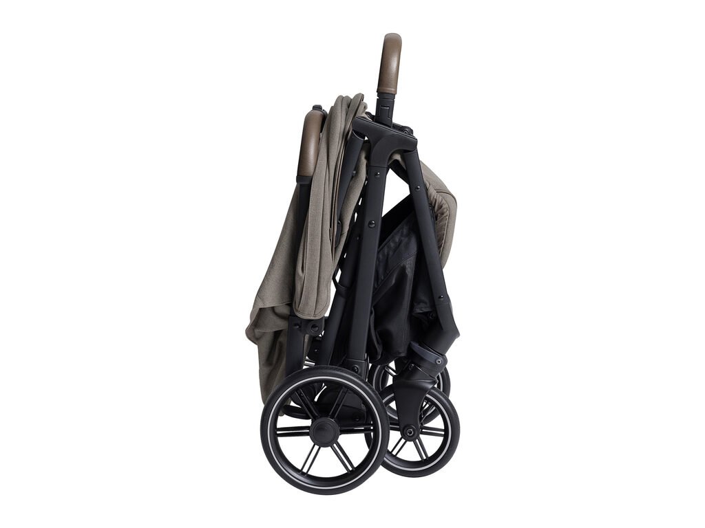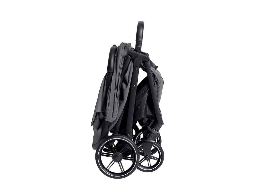 - Rýchle skladanie jednou rukou – kočík po zložení samostatne stojí a je mimoriadne kompaktný.