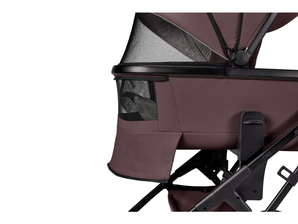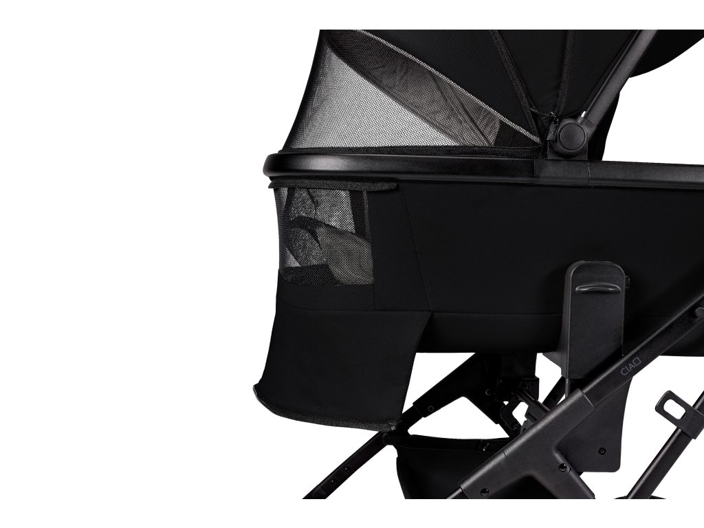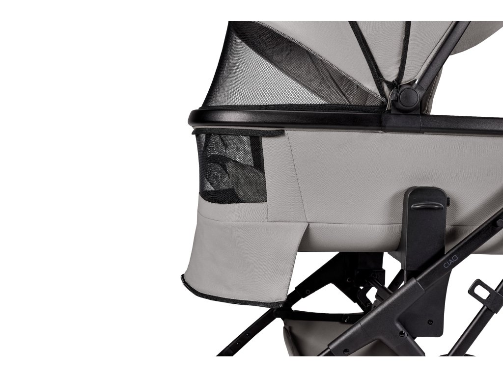 Vanička kočíka Moon Ciao je navrhnutá s ohľadom na zdravý vývoj bábätka. Je extra široká a vybavená prémiovým matracom Träumeland v kvalite detskej postieľky.
