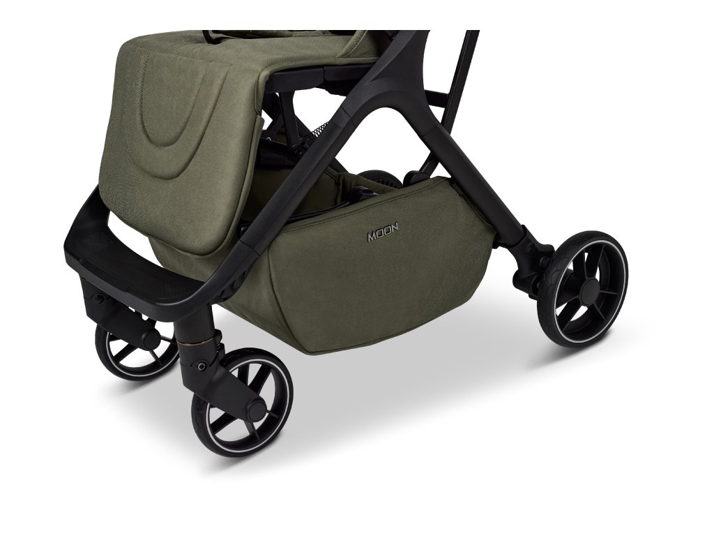 Najväčšou prednosťou kočíka Moon Zoé je jeho inteligentný systém skladania. Pomocou jedného tlačidla na rukoväti sa kočík sám zloží na minimálnu veľkosť. Táto funkcia je neoceniteľná, keď v druhej ruke držíte dieťa alebo nákupné tašky. Vďaka kompaktným rozmerom po zložení sa zmestí aj do malých kufrov áut alebo do úložných priestorov v lietadle.