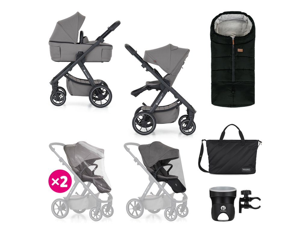 - Kompletný set: Súčasťou je vanička, športová časť, prebaľovacia taška Mia, fusak Jibot 3v1, pláštenky a adaptéry.