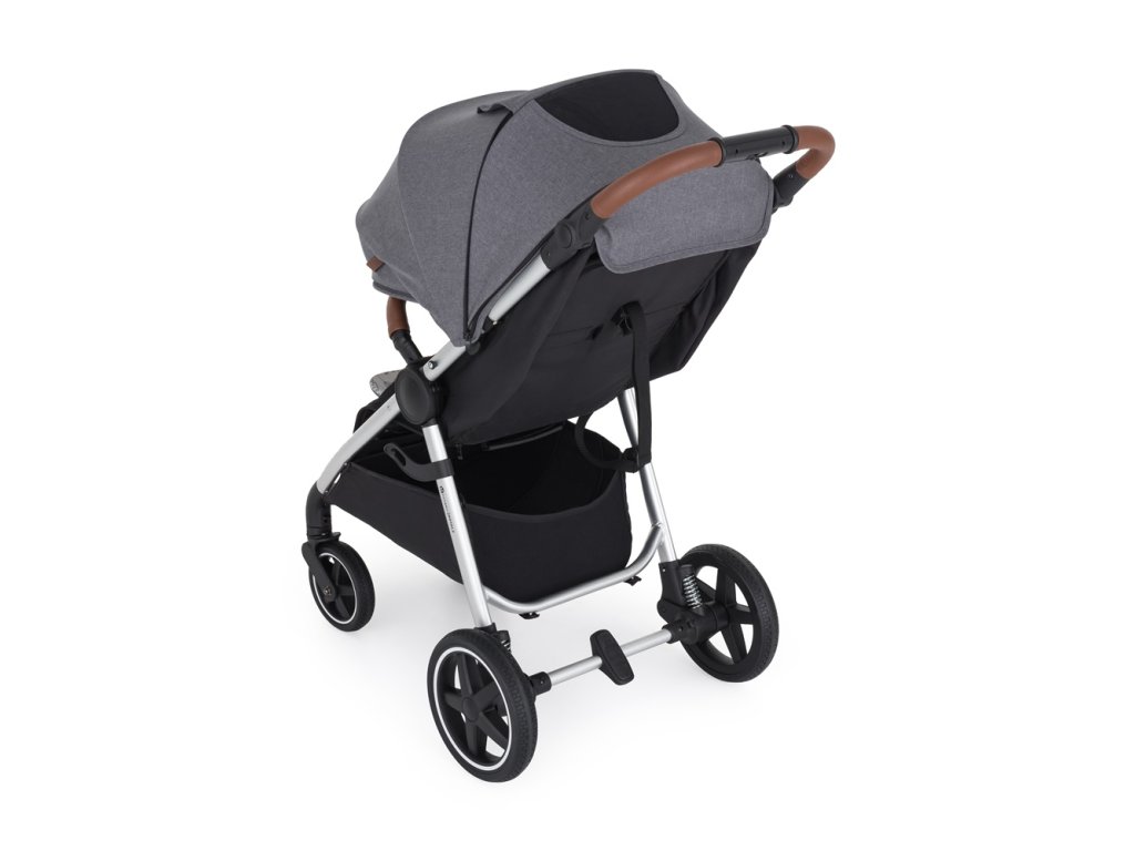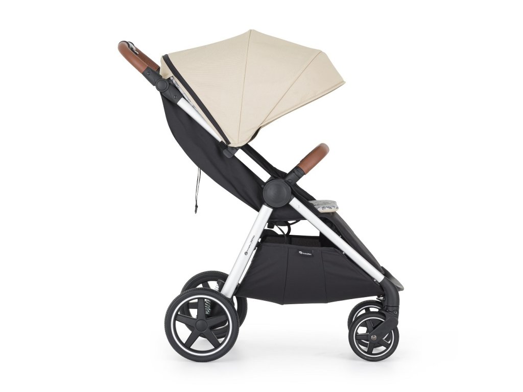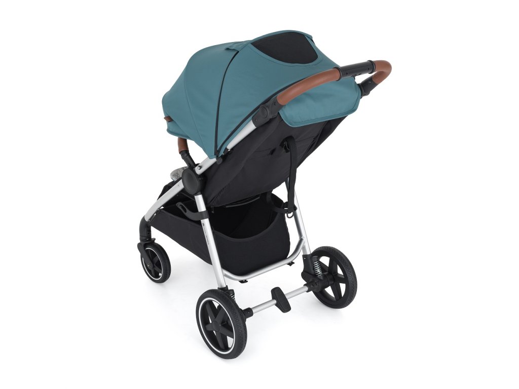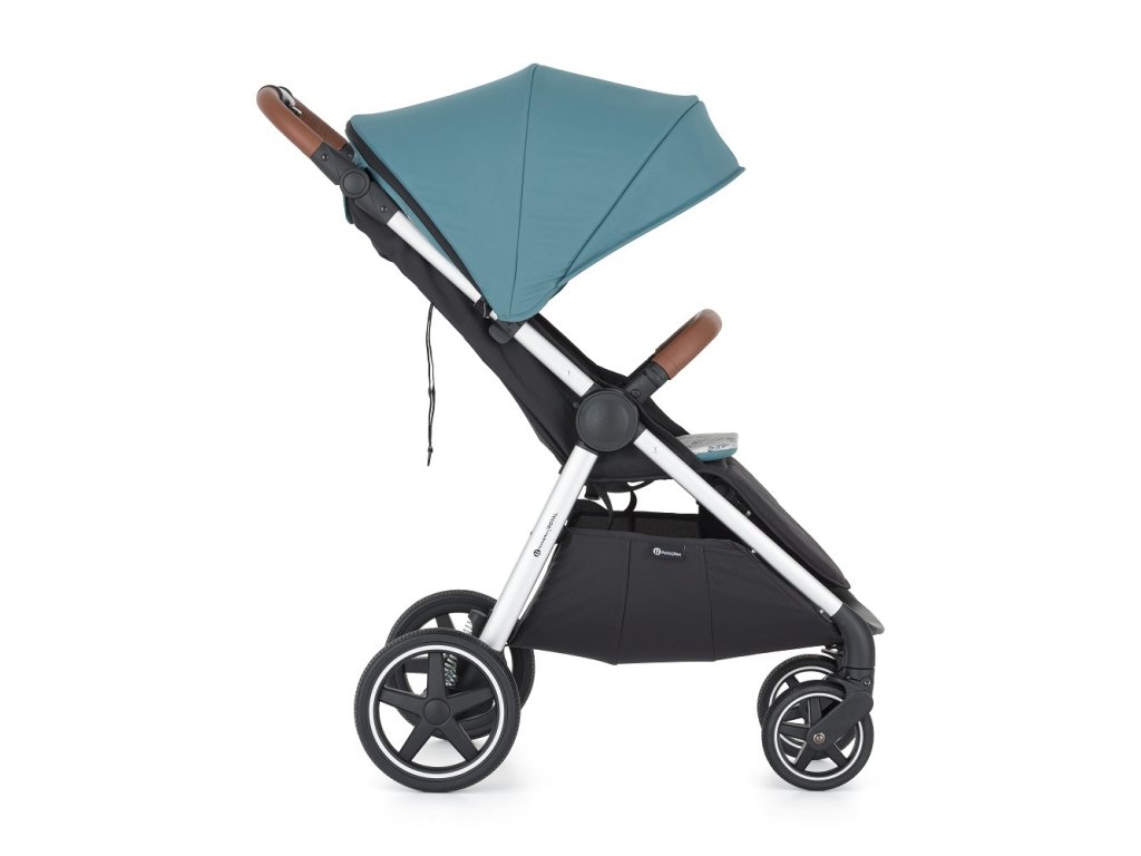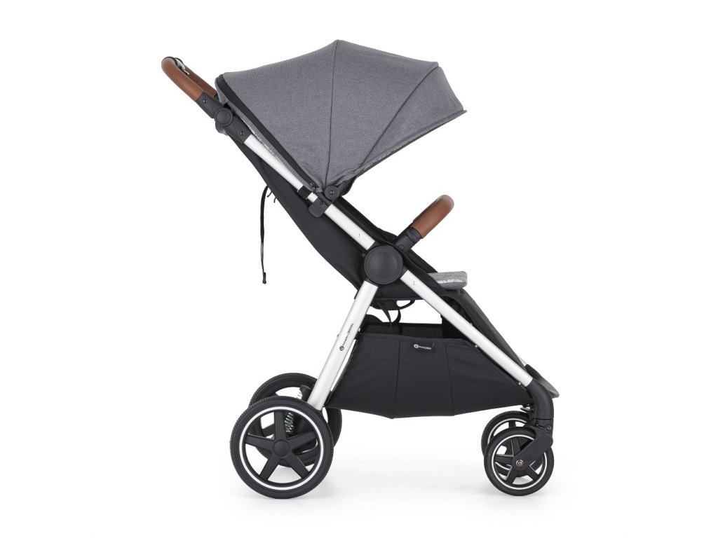 - Prispôsobivosť: Výškovo nastaviteľná rukoväť z eko-kože zabezpečí pohodlné tlačenie kočíka aj vyšším oteckom.