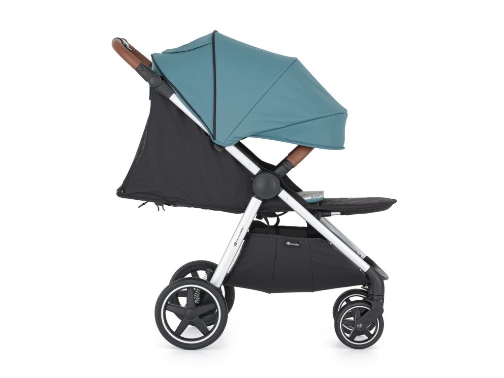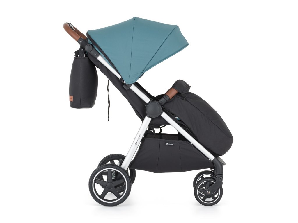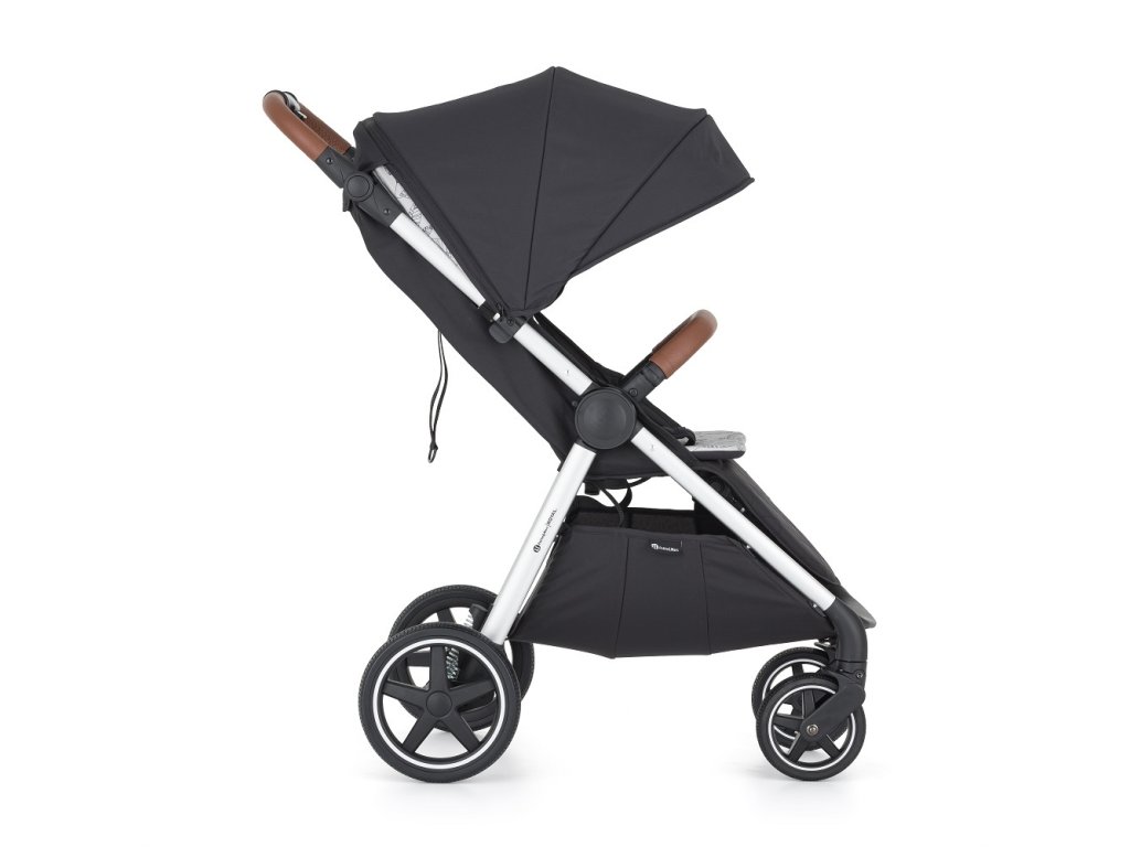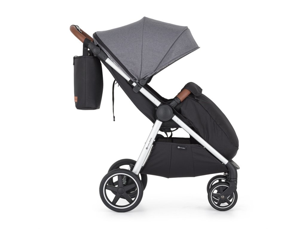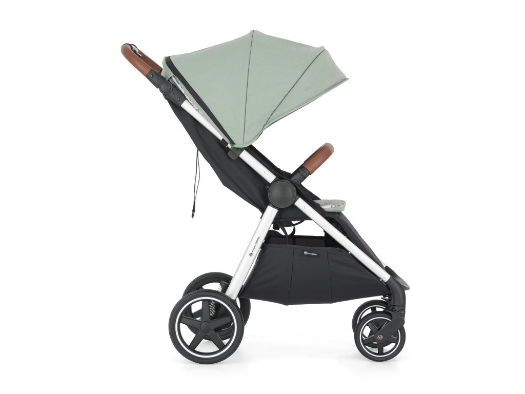 - Prispôsobivosť: Výškovo nastaviteľná rukoväť z eko-kože zabezpečí pohodlné tlačenie kočíka aj vyšším oteckom.