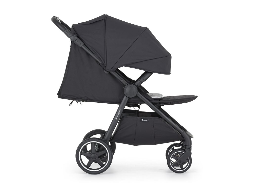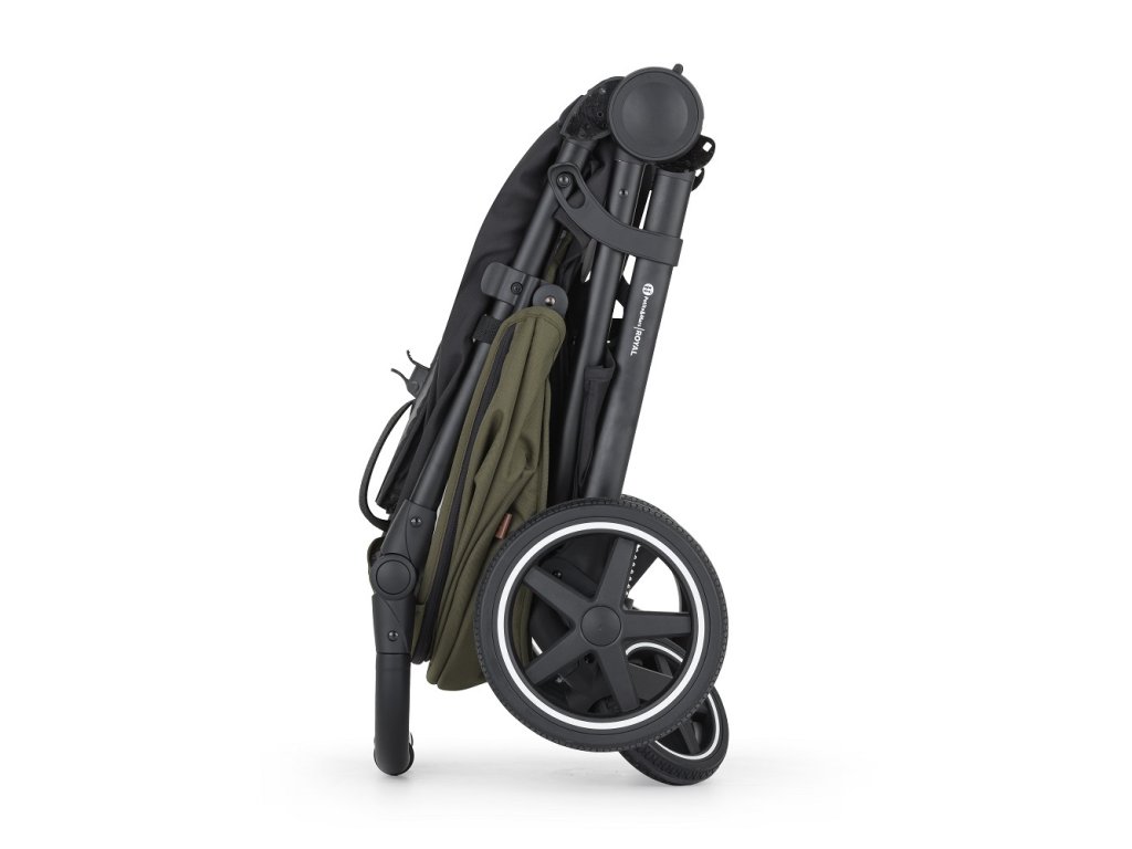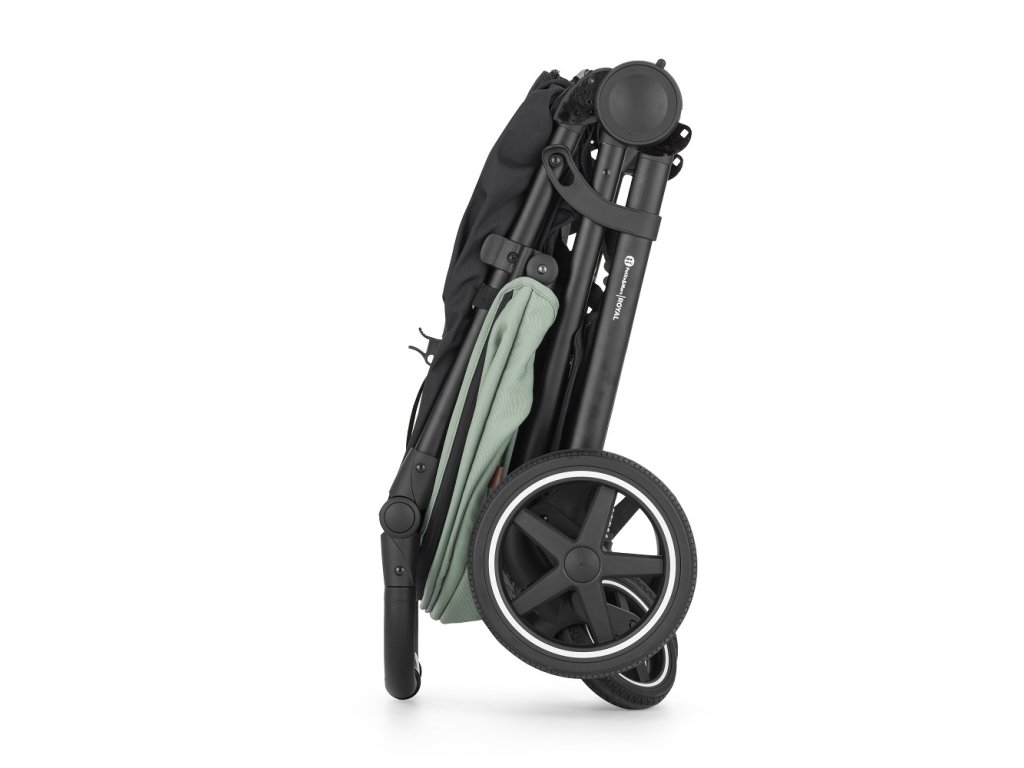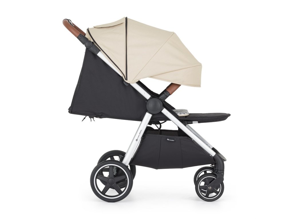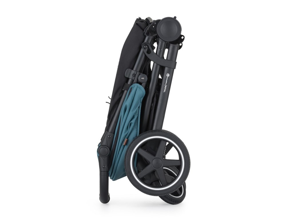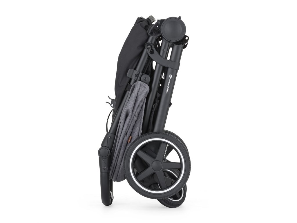 - Skladanie jednou rukou: Jednoduchý mechanizmus umožňuje kočík zložiť rýchlo, pričom poťah smeruje dovnútra a ostáva čistý.