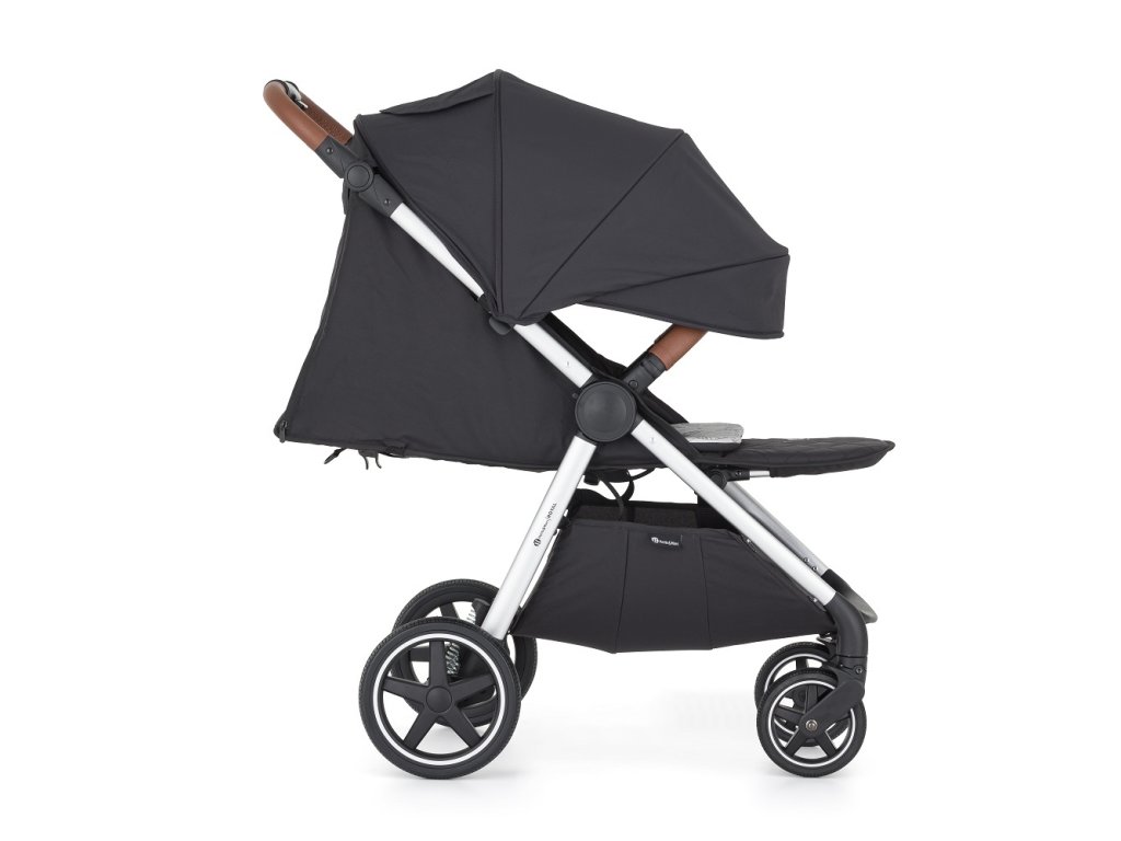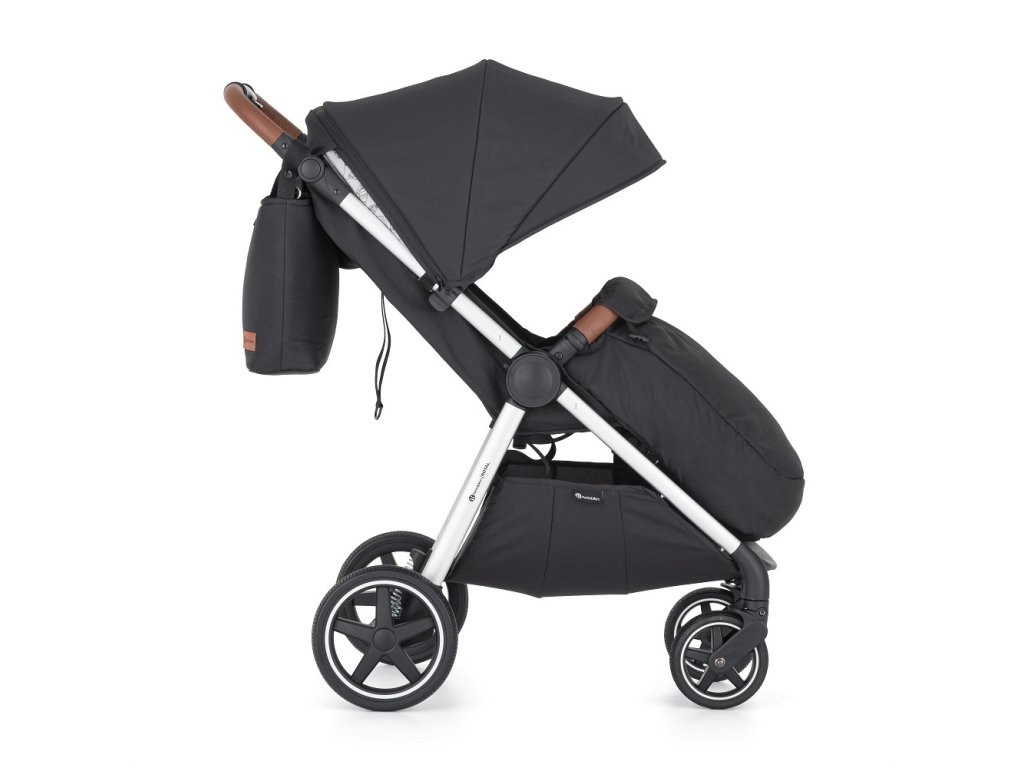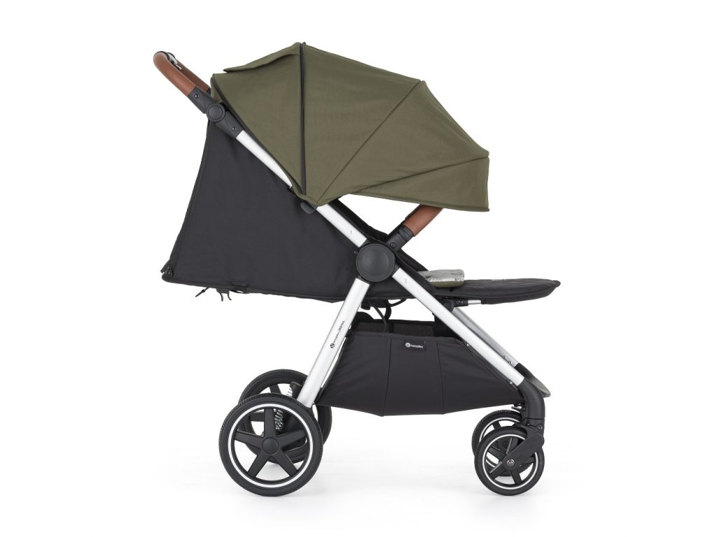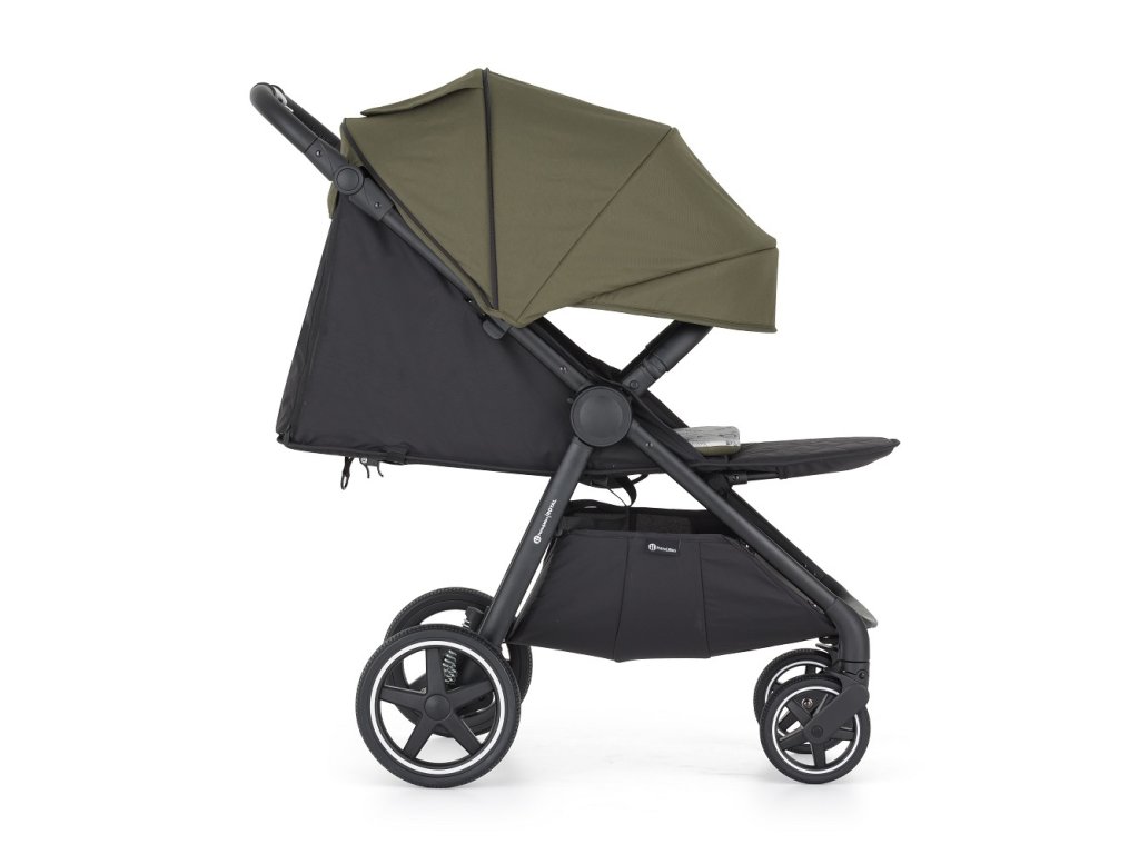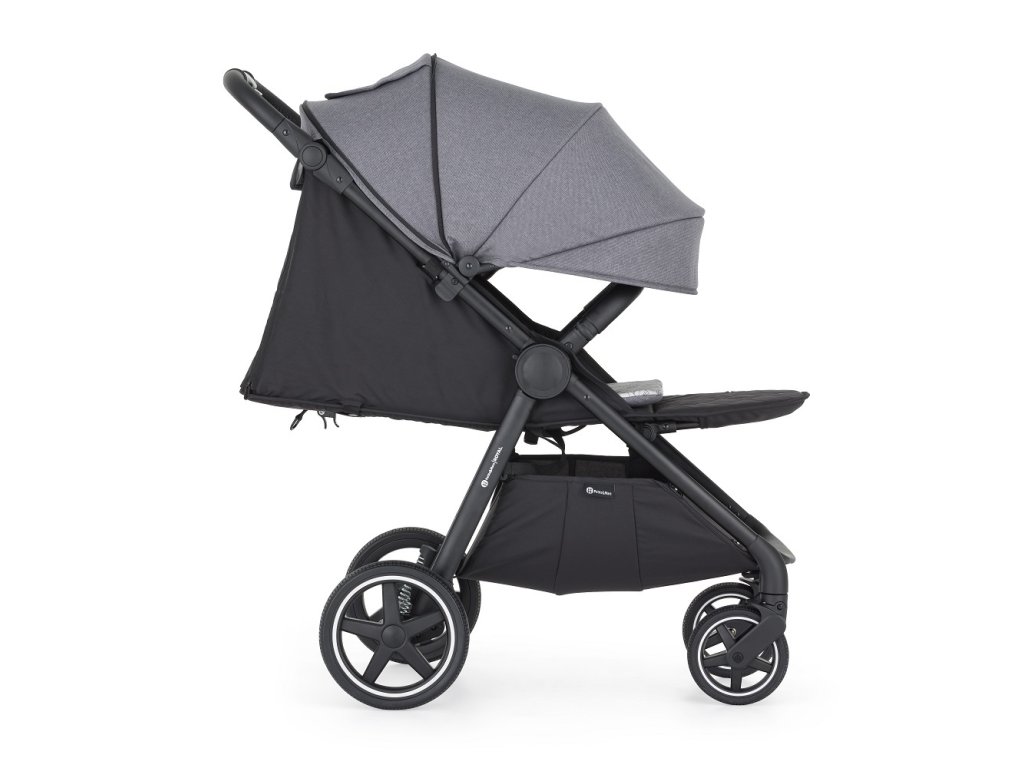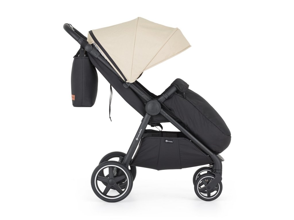 - Skladanie jednou rukou: Jednoduchý mechanizmus umožňuje kočík zložiť rýchlo, pričom poťah smeruje dovnútra a ostáva čistý.
