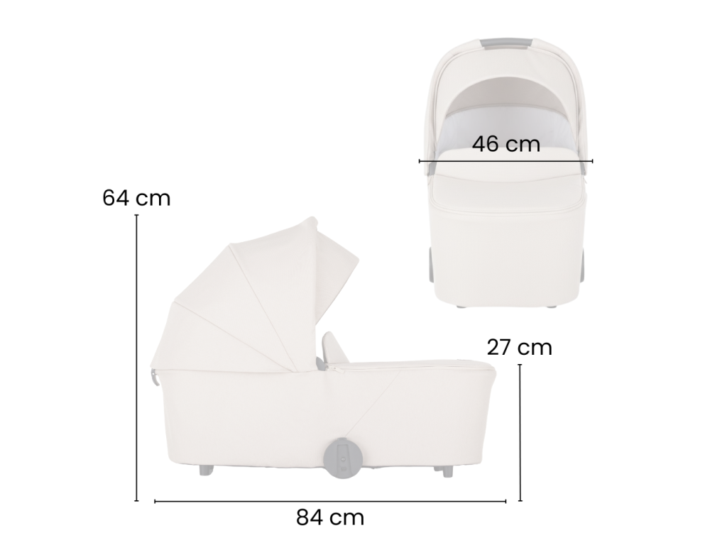 Pre tie najmenšie deti ponúka kočík extra priestrannú vaničku s mäkkou vložkou o rozmeroch 77 × 32 cm, ktorá vytvára dokonalé prostredie pre pokojný spánok. Športová časť disponuje dlhou chrbtovou opierkou (51 cm) a nastaviteľnou opierkou nôh, vďaka čomu dosiahnete celkovú dĺžku spacej plochy až 94 cm. Vaše dieťa tak bude mať dostatok miesta na odpočinok aj počas dlhších výletov.
