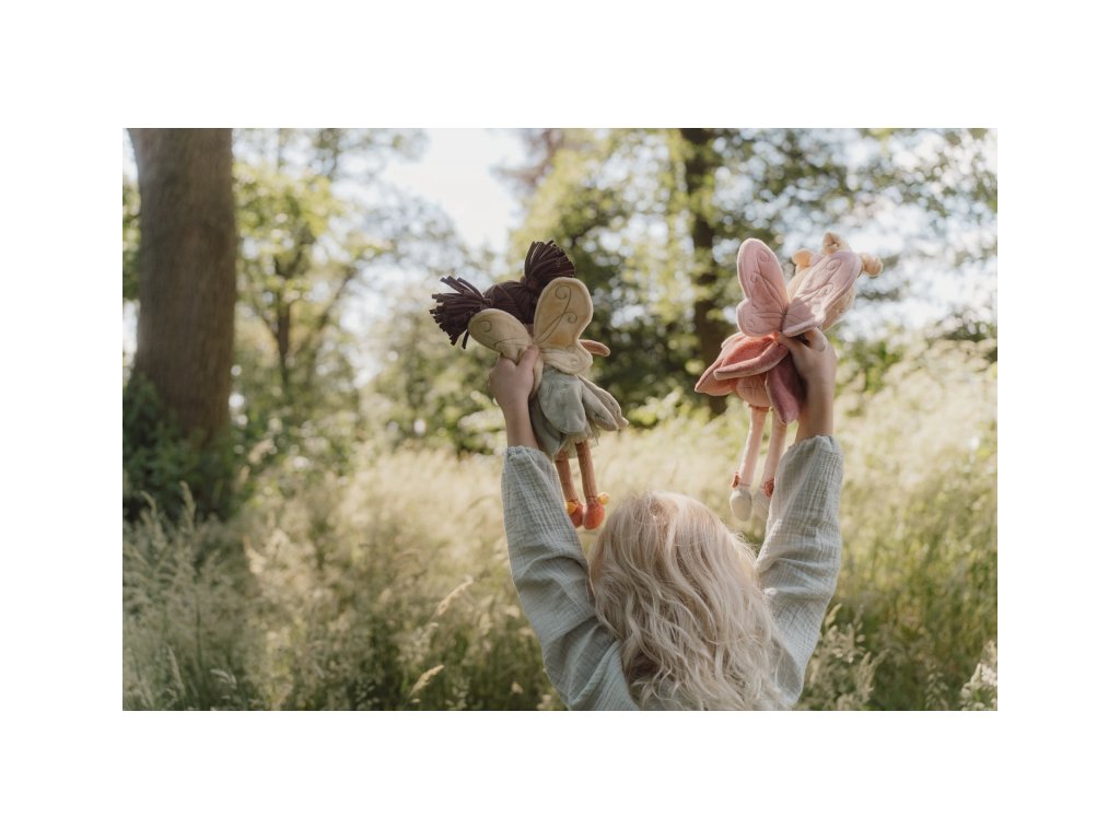 Z kúzelnej kvetinovej záhrady k vám domov prichádza neodolateľná víla Mila! Bábika z jemnoho mäkkého materiálu s krídlami a krásnymi šatami je vhodná na hranie aj maznanie a bude sa s ňou aj krásne zaspávať!Výplň je vyrobená zo 100% recyklovaného polyesteru s certifikáciou GRS (Global Recycled Standard).
